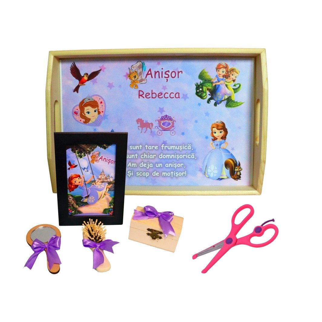 Fii primul care scrii o recenzie pentru „Set Mot Personalizat, Printesa Sofia, 6 Piese, Lemn, Mov, 20x30cm, SMD079”