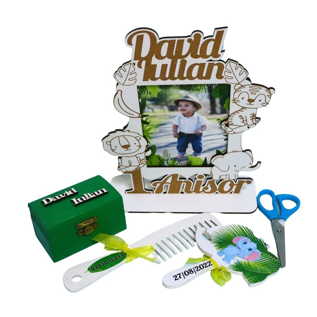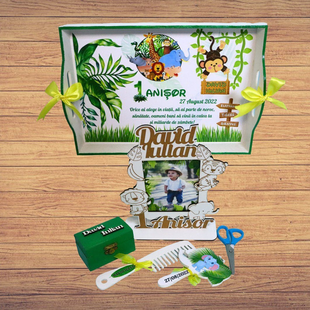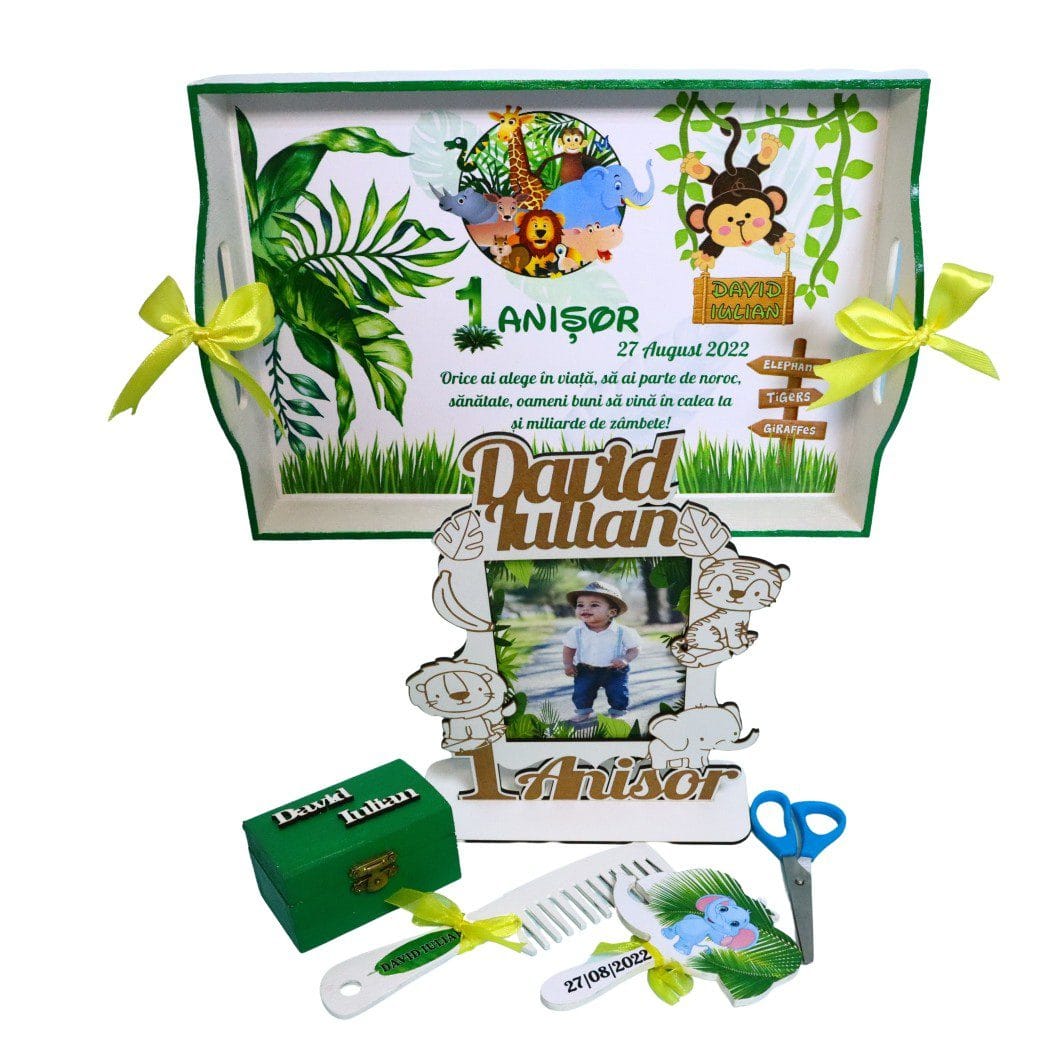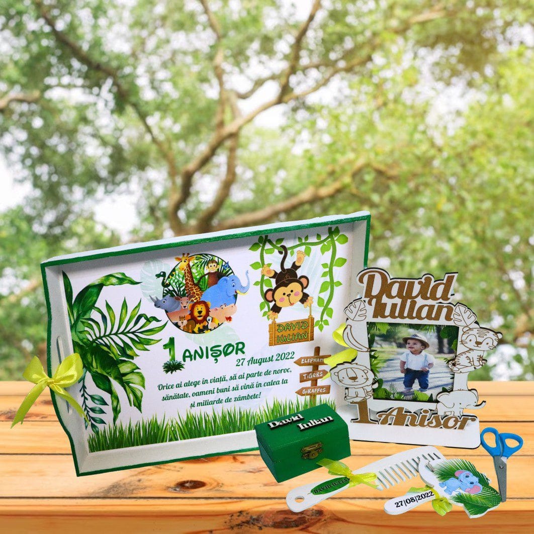 Set Mot Personalizat, Safari, 6 Piese, poate fi un cadou din partea nasilor la taierea motului.