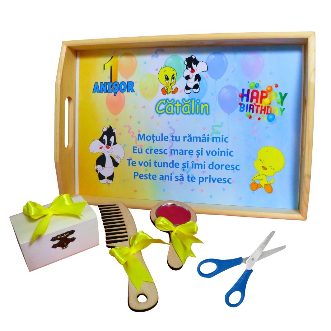 Set mot/Turta personalizat pentru taiere motului copilului la aniversarea de un anisor.