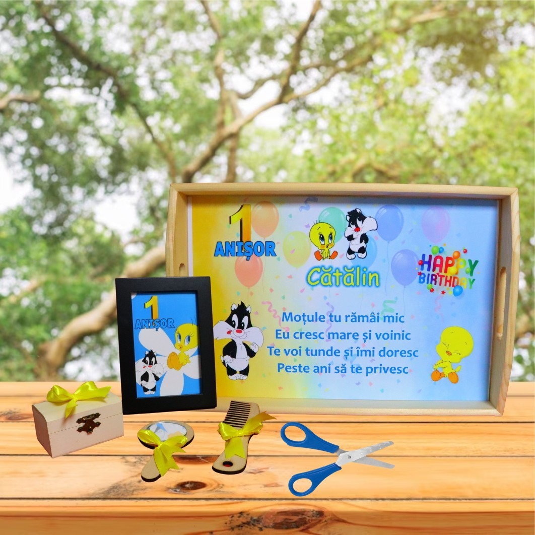 Set mot/Turta personalizat pentru taiere motului copilului la aniversarea de un anisor.