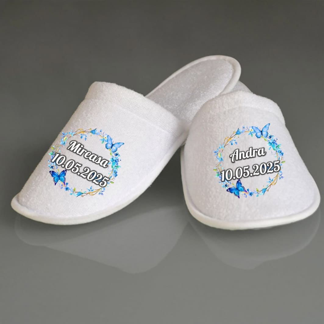 Set Papuci, Mireasa, Personalizat, Albastru, Nunta, PMN003