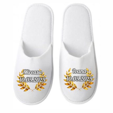 Papucii personalizati sunt de obicei purtati in timpul pregatirii pentru nunta sau dupa ceremonie, atunci cand mireasa doreste sa-si elibereze picioarele de pantofii de nunta mai rigizi si sa se simta mai confortabil.