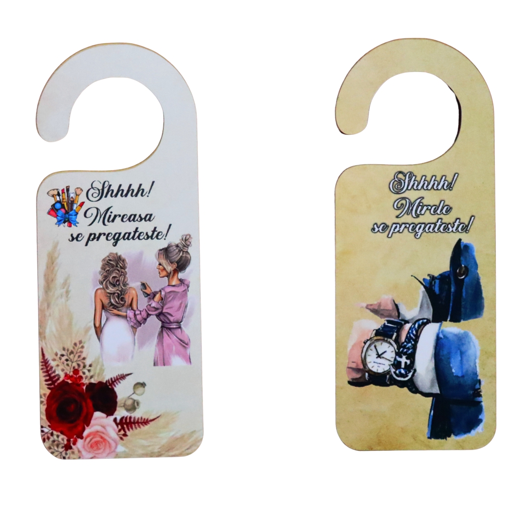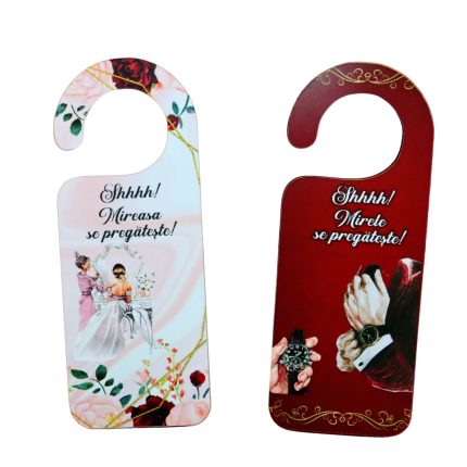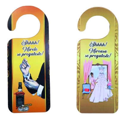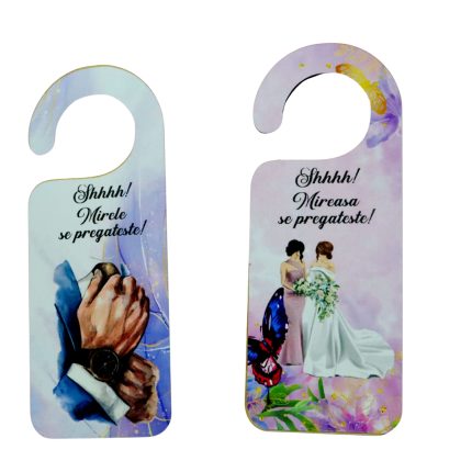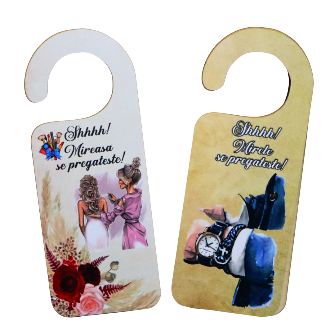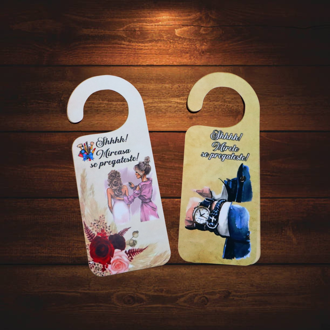 Set placute personalizate pentru usa mirilor. Se personalizeaza cu data evenimentului.