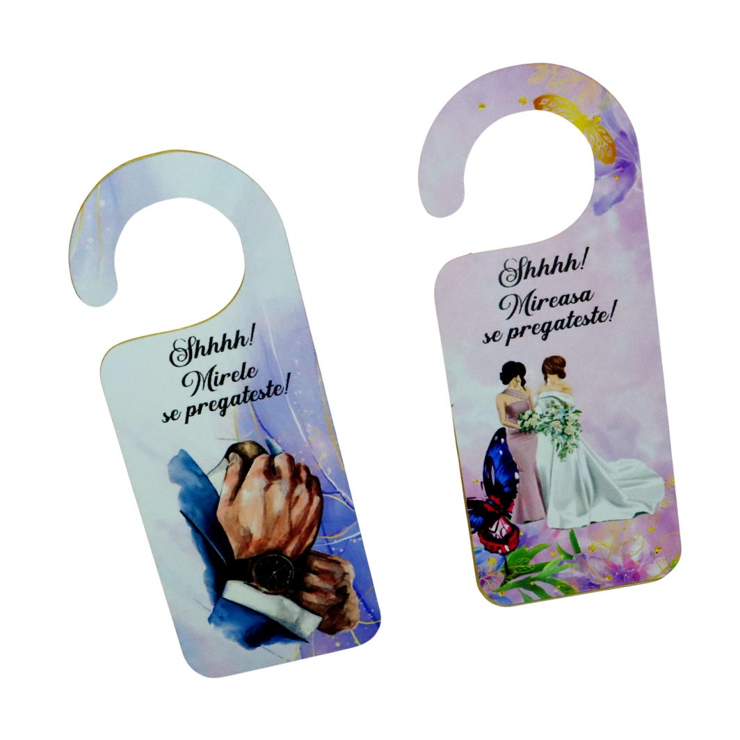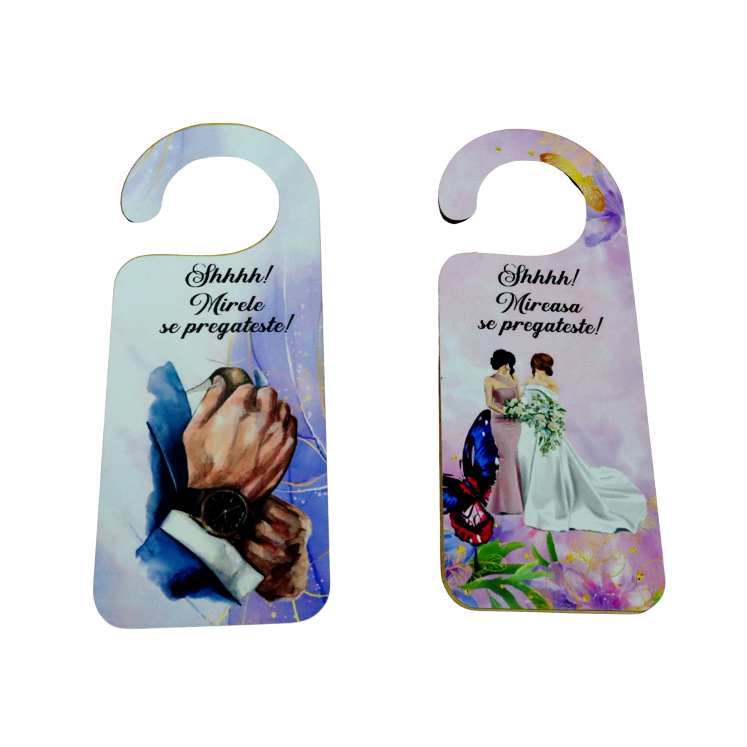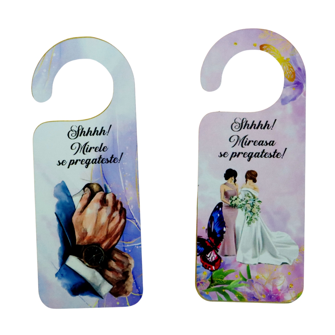 Set placute personalizate pentru usa mirilor.