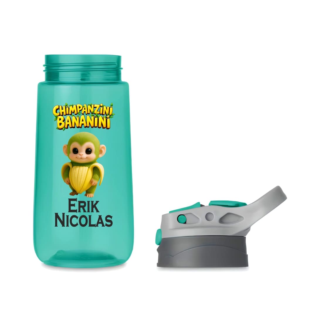***Sticla de Apa Copii, Personalizata, Cu Pai, Bananini, Verde, 450ml***: Alegerea inteligentă pentru o hidratare sigură, stilată și 100% fără BPA.