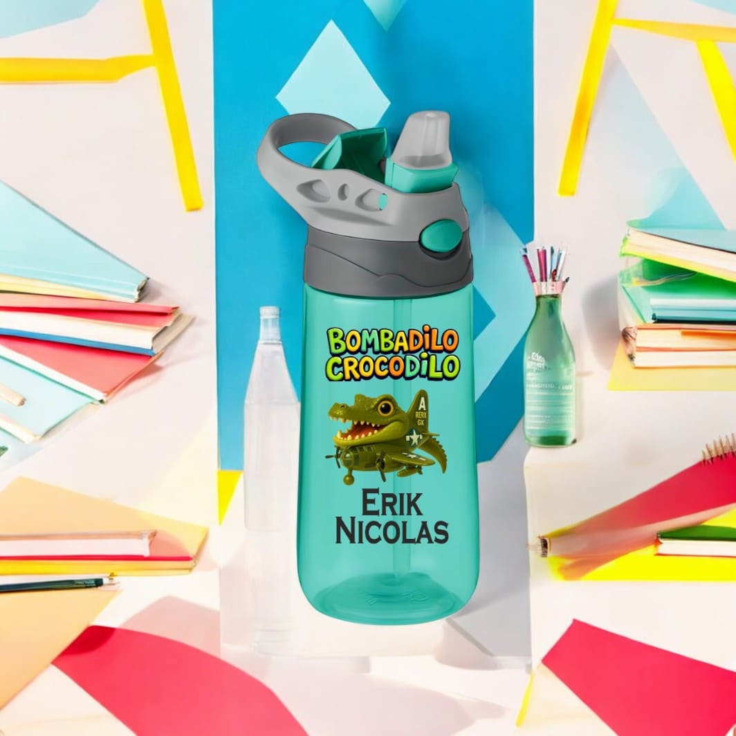 ***Sticla de Apa Copii, Personalizata, Crocodilo, Verde, 450ml***: Alegerea inteligentă pentru o hidratare sigură, stilată și 100% fără BPA.