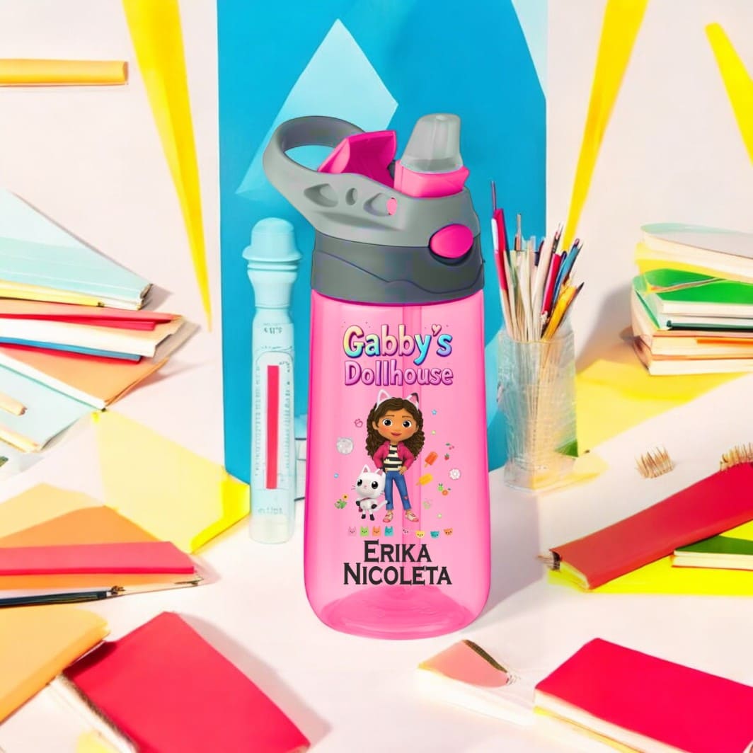 ***Sticla de Apa Copii, Personalizata, Gabby’s Dollhouse, Roz, 450ml***: Alegerea inteligentă pentru o hidratare sigură, stilată și 100% fără BPA.