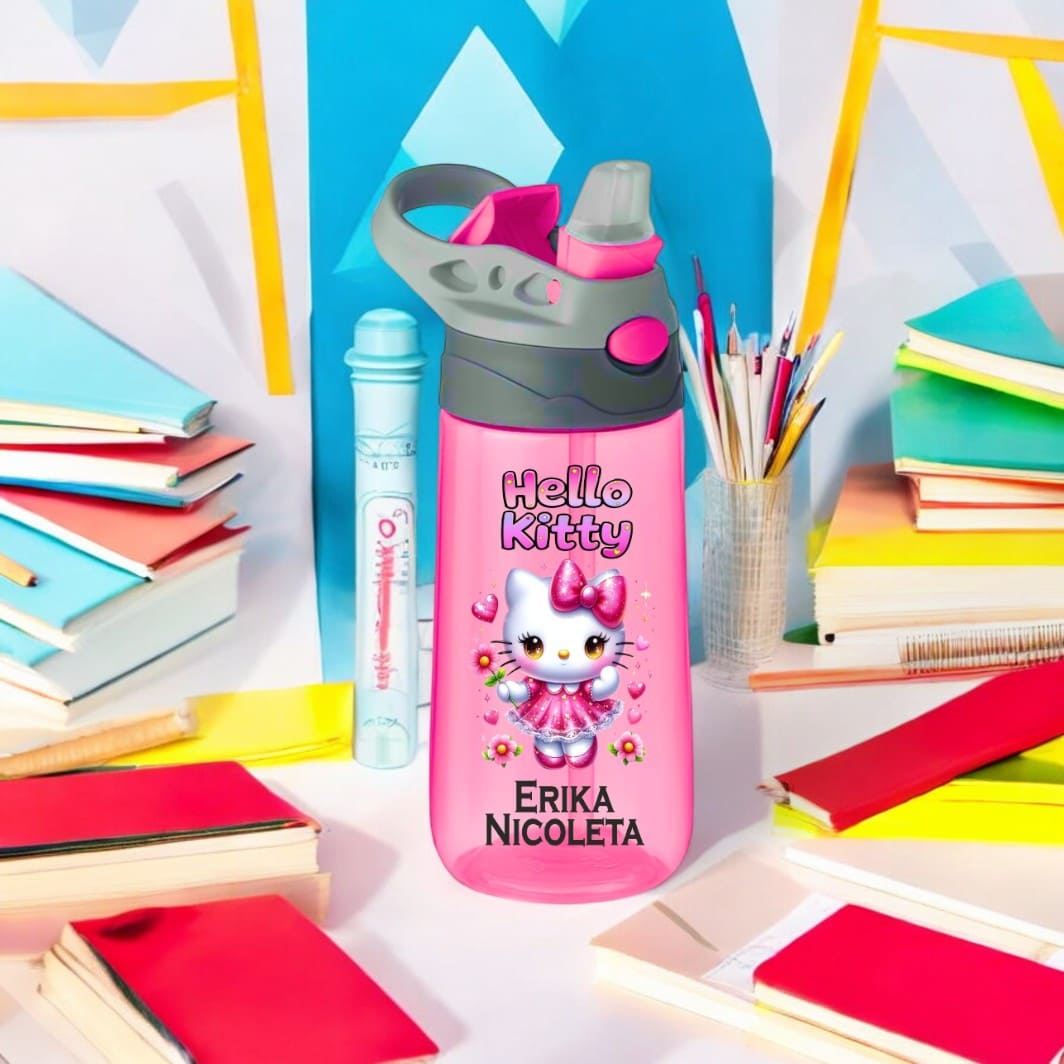 ***Sticla de Apa Copii, Personalizata, Hello Kitty, Roz, 450ml***: Alegerea inteligentă pentru o hidratare sigură, stilată și 100% fără BPA.