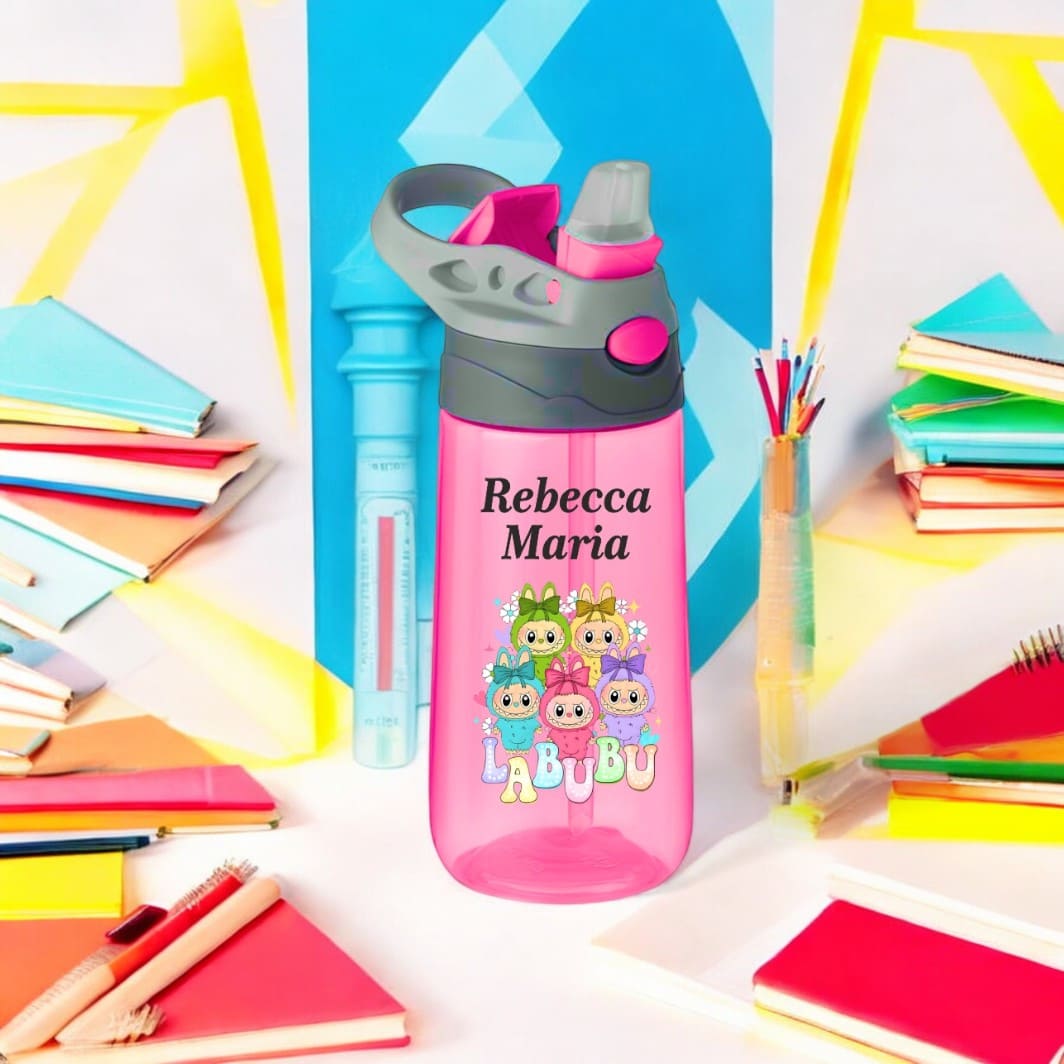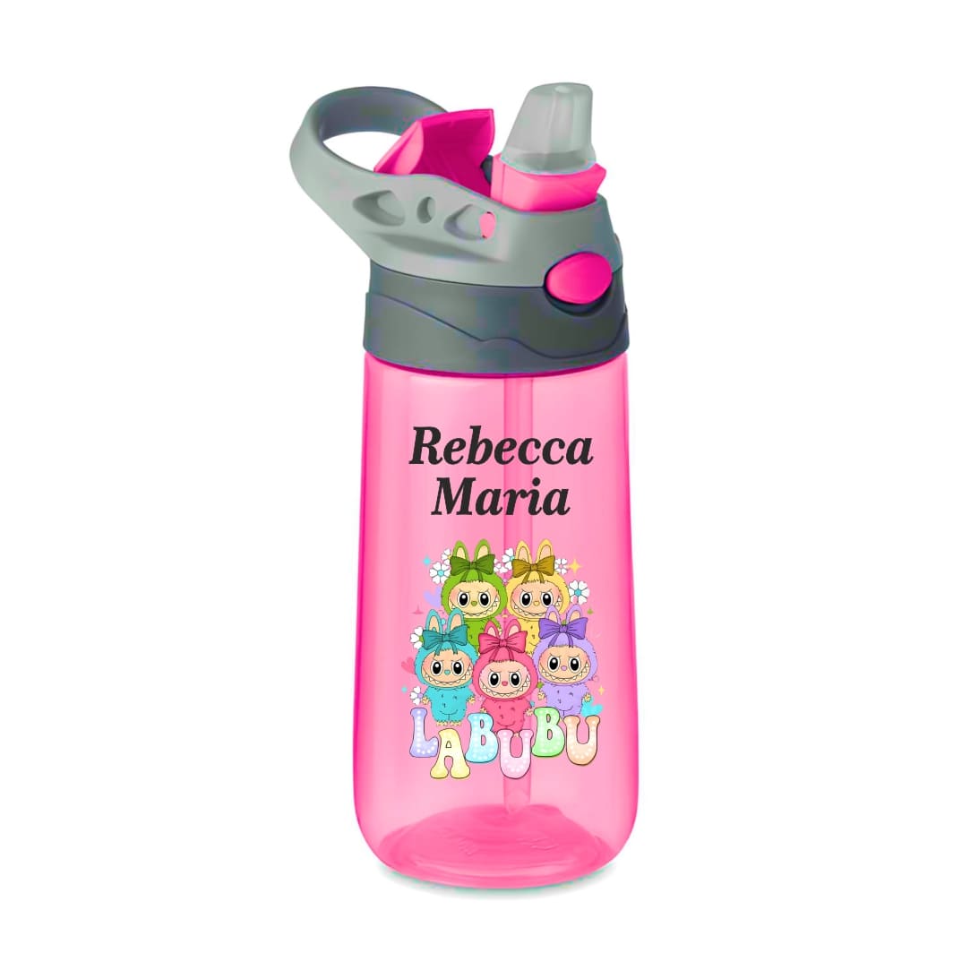 Sticla Apa Copii, Personalizata, Cu Pai, Labubu, Roz, 450ml, BPS057 Prețul inițial a fost: 74,99 lei.Prețul curent este: 59,99 lei.
