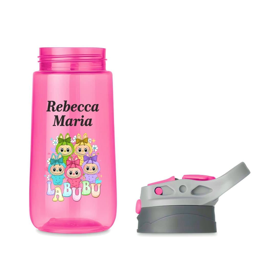 ***Sticla de Apa Copii, Personalizata, Labubu, Roz, 450ml***: Alegerea inteligentă pentru o hidratare sigură, stilată și 100% fără BPA.