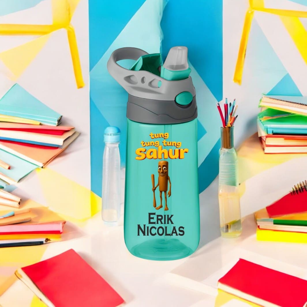 ***Sticla de Apa Copii, Personalizata, Sahur, Verde, 450ml***: Alegerea inteligentă pentru o hidratare sigură, stilată și 100% fără BPA.