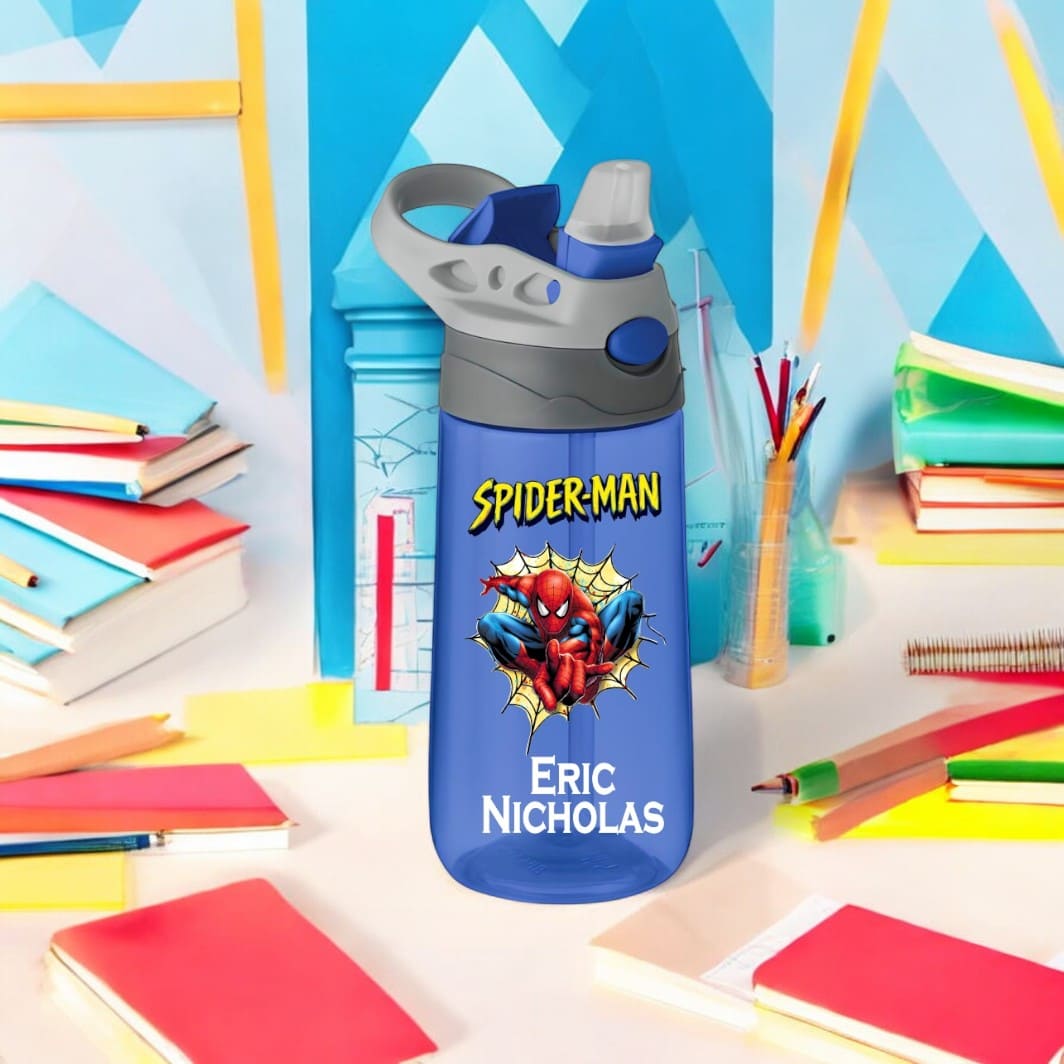 Sticla Apa Copii, Personalizata, Cu Pai, Spiderman, Albastra, 450ml, BPS069
