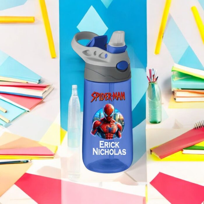 ***Sticla de Apa Copii, Personalizata, Spiderman City, Albastra, 450ml***: Alegerea inteligentă pentru o hidratare sigură, stilată și 100% fără BPA.
