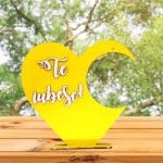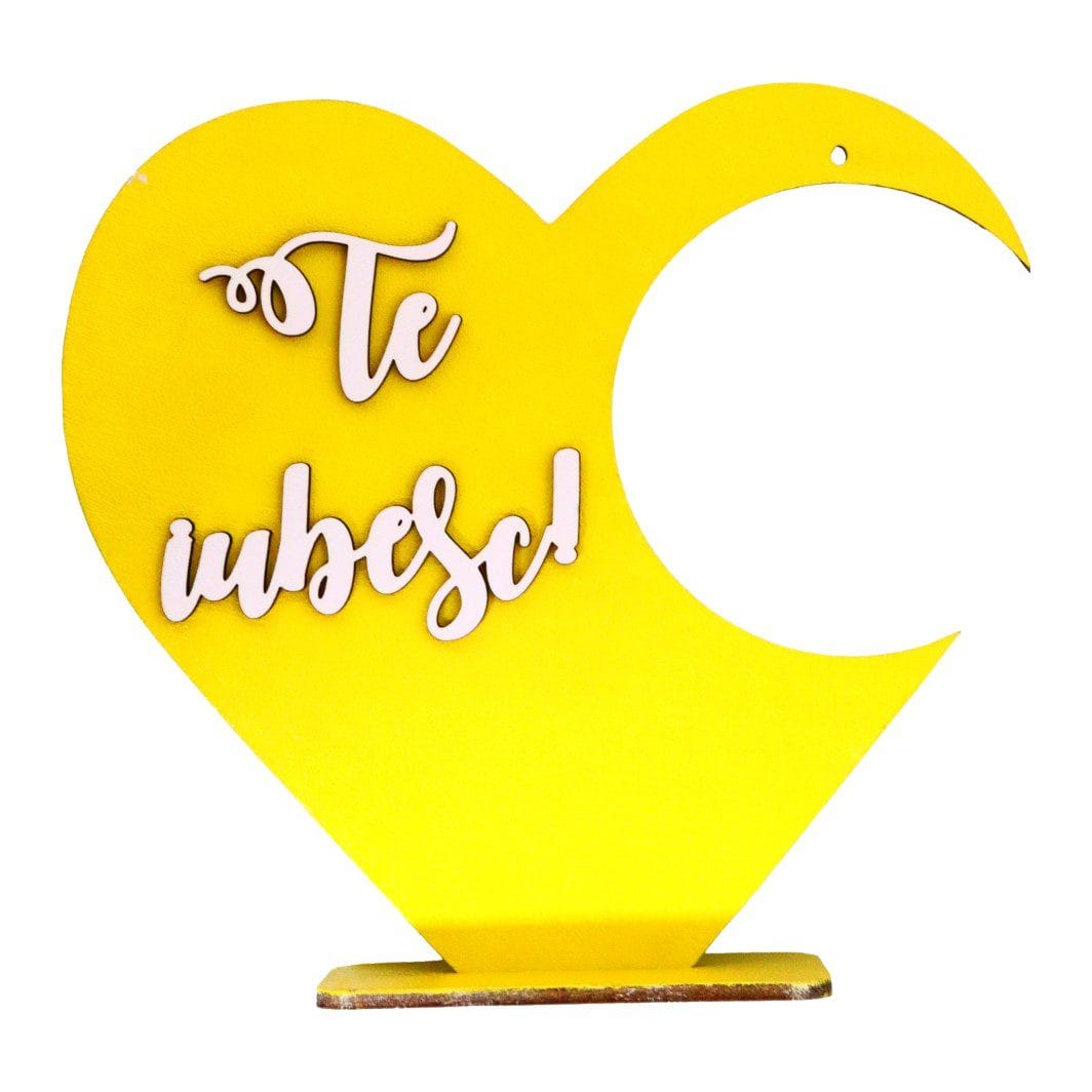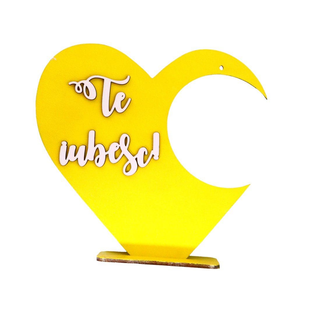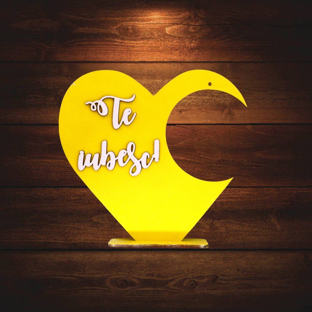 Suport in forma de inima pentru globurile de sticla/plastic si cu mesajul „Te iubesc!” aplicat 3D.
