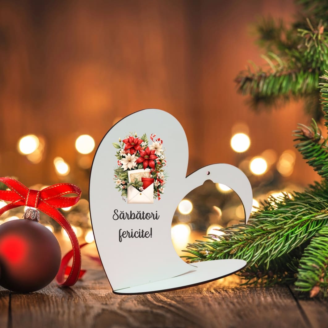 Suport Glob Floral tip Inima, Craciun, Lemn, 20x19cm, SFGCUV010 Interval de prețuri: 29,99 lei până la 39,50 lei