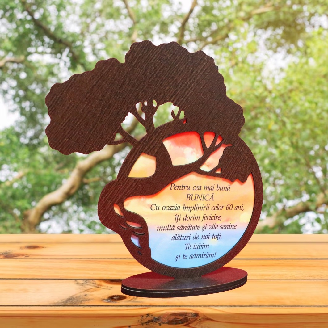 Suport Licheni, Decoratiune bunica, Copac, Bonsai, Lemn, Wenge, 22x23cm, DCB002