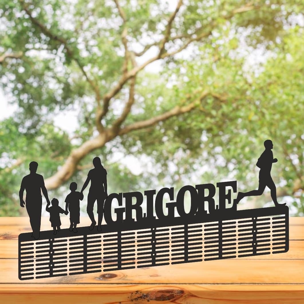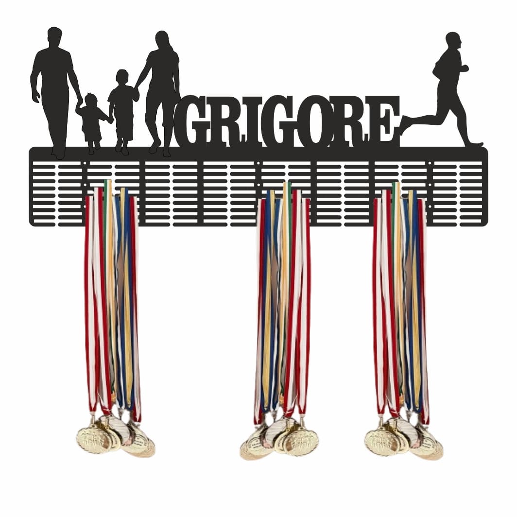 Suport Medalii, Personalizat – Atletism, Familie, Negru, Lemn, 60x26cm (SM011)