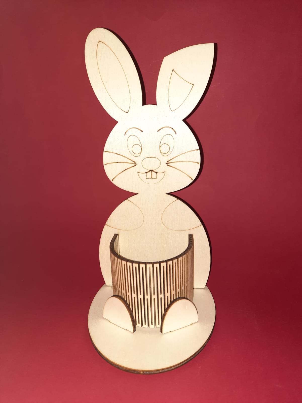 Îți dorești să transformi masa de Paște într-un spațiu plin de farmec și căldură? Acest suport oua iepure din lemn natural este alegerea perfectă! Creat special pentru a evidenția un ou de Paște, acest suport elegant are forma unui iepuraș stilizat, îmbinând tradiția cu un design modern. Detaliile atent decupate și liniile fine oferă un aer prietenos, ideal pentru atmosfera sărbătorilor pascale.