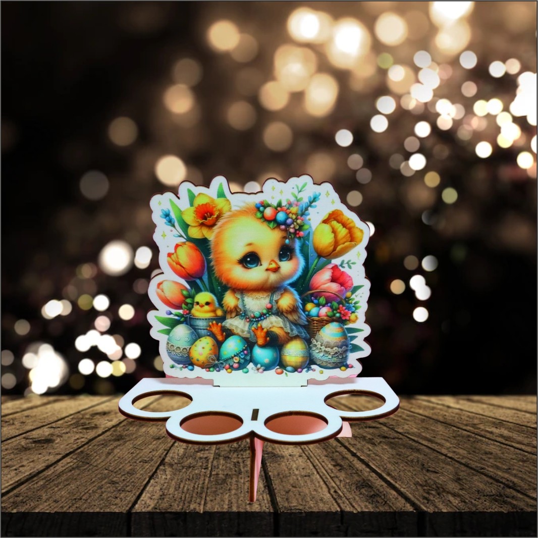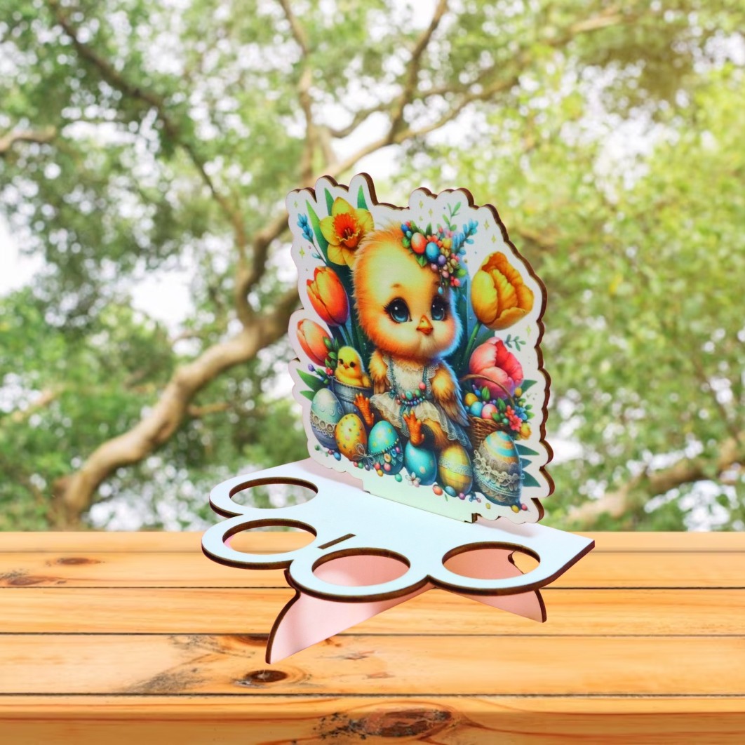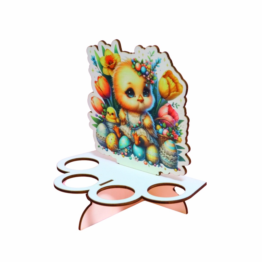 Suport  din lemn cu 12 locuri pentru oua si motive pascale.