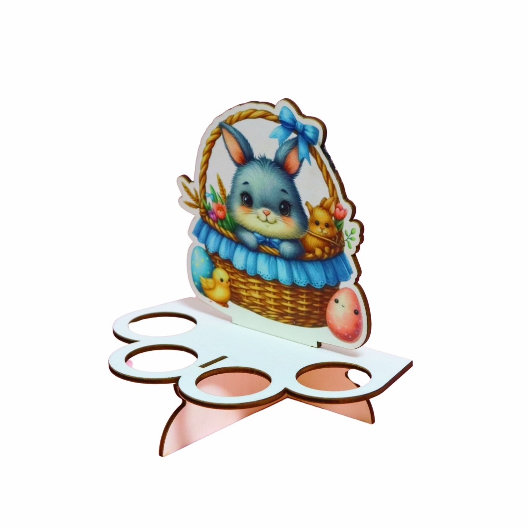 Suport  din lemn cu 12 locuri pentru oua si motive pascale.