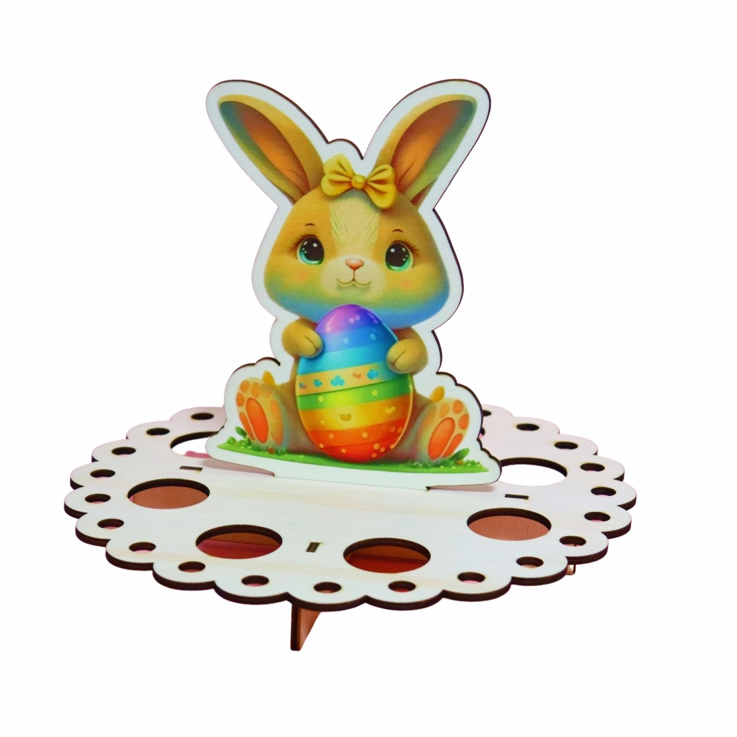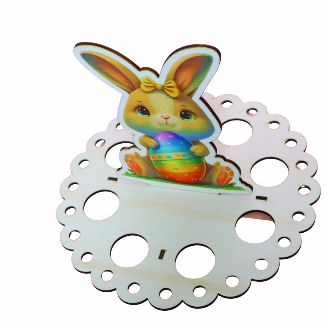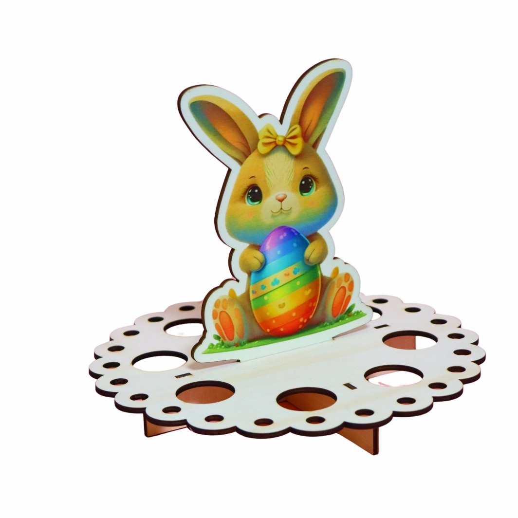 Suport  din lemn cu 8 locuri pentru oua si motive pascale.