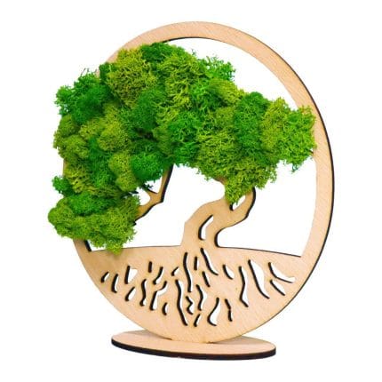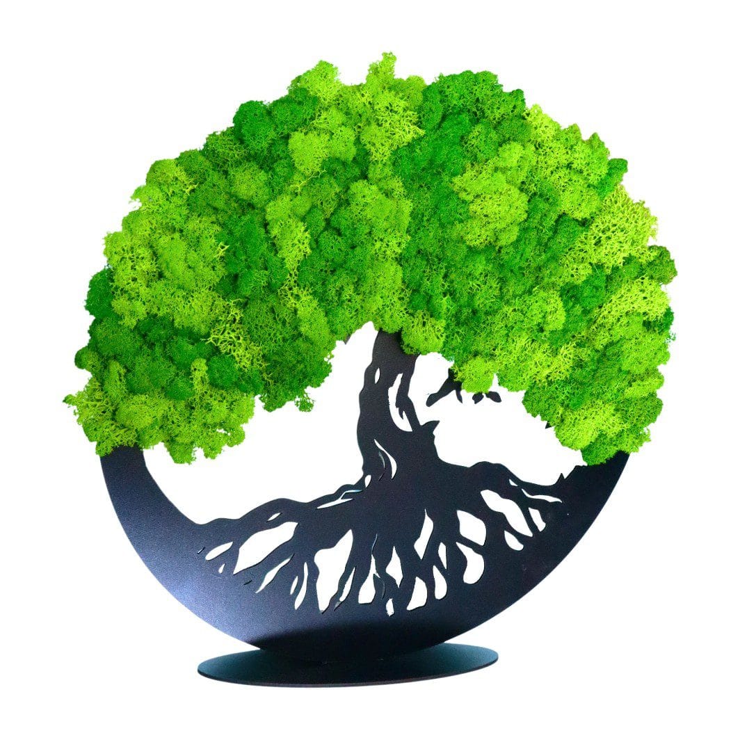 Tablou Copacul Vietii, Licheni Naturali Stabilizati, Cu Suport Negru, Verde, DL007
