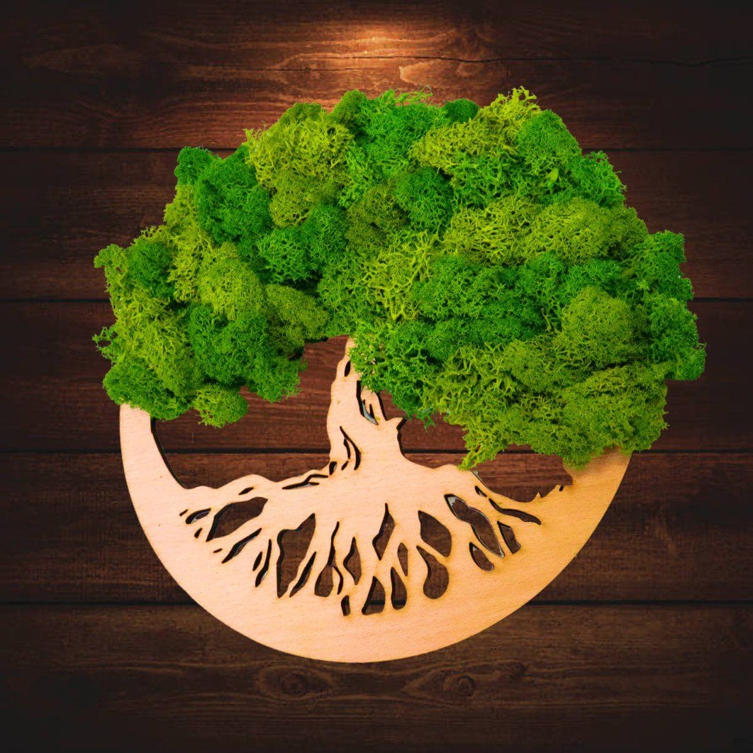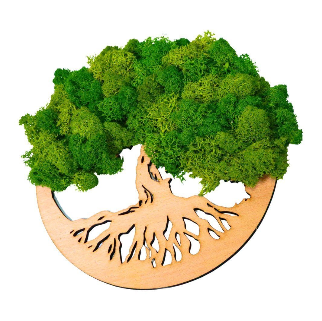 Tablou Copacul Vietii, Licheni Naturali Stabilizati, Cu Suport, Verde, DL005