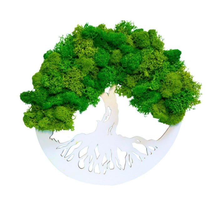 Tablou Copacul Vietii, Licheni Naturali Stabilizati, Cu suport Lemn Natur, Verde, DL079