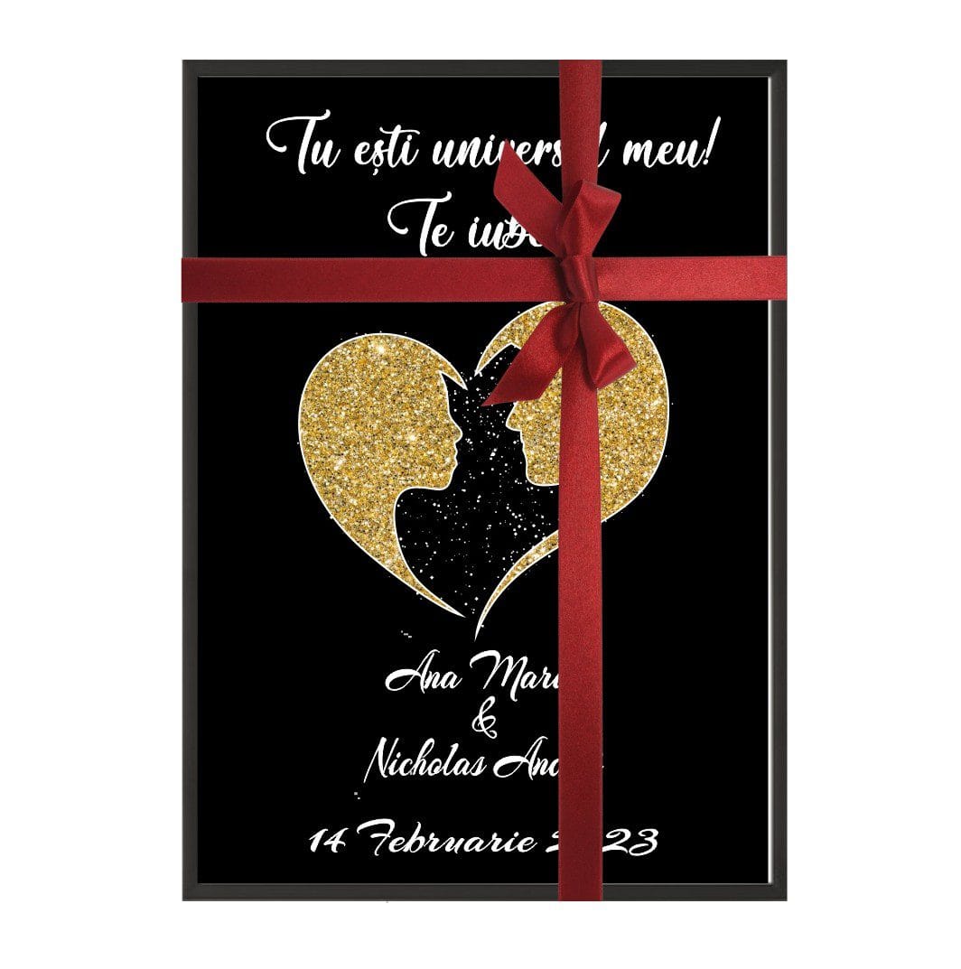Tablou Personalizat Cuplu, Nume si Data, Te iubesc, Auriu, A3, 40×30 cm, TBS012