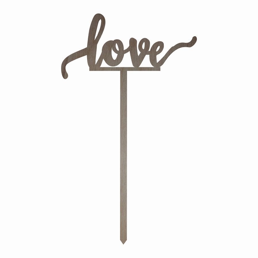 Topper „Love” lemn cu tija pentru aranjamente florale