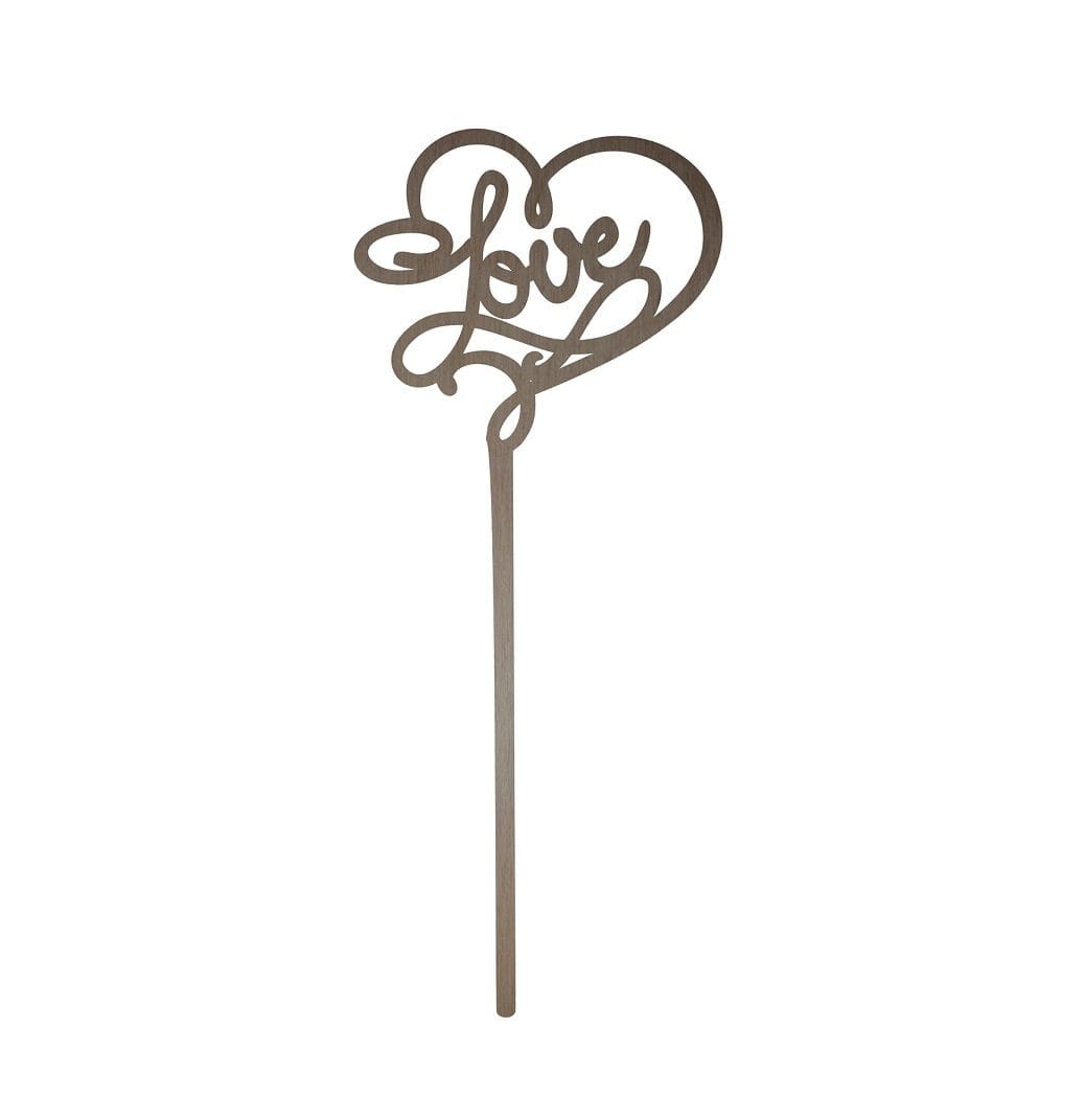 Topper „Love” lemn cu tija pentru aranjamente florale