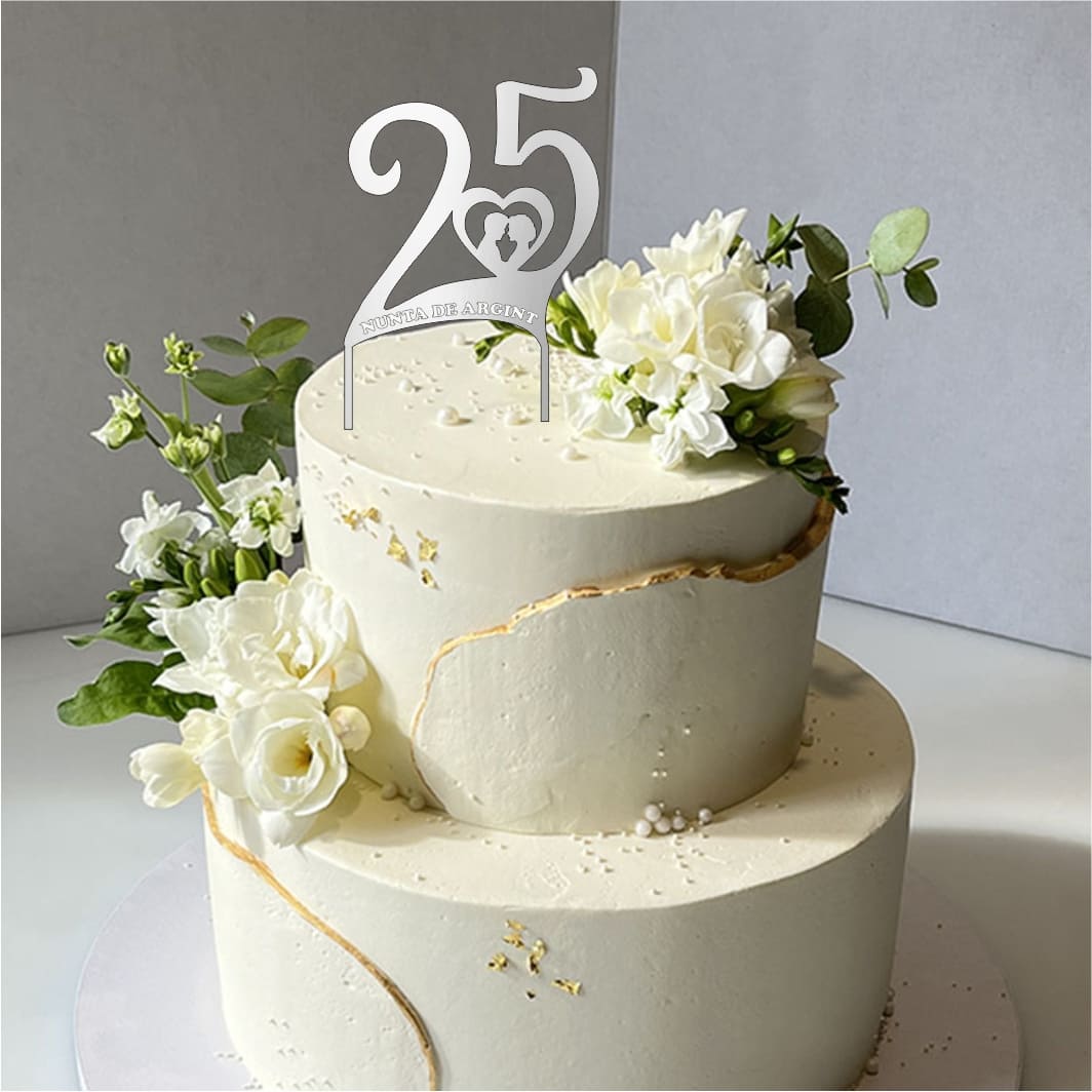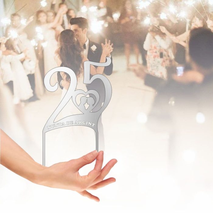 Topper, Nunta de Argint, Plexiglas Argintiu Oglinda, 15 cm, TN042