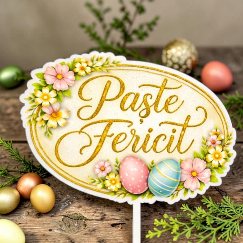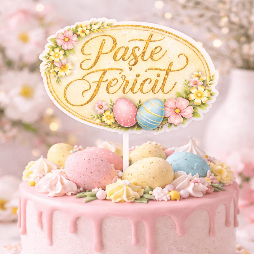 Topperul Paște poate fi utilizat cu succes nu doar pentru torturi, ci și pentru cozonaci, platouri festive, buchete sau aranjamente florale de primăvară. Este un accesoriu ușor de integrat, care oferă un impact vizual imediat, fără a încărca decorul. De asemenea, poate fi refolosit de la un an la altul, fiind o alternativă practică și durabilă la decorațiunile de unică folosință.