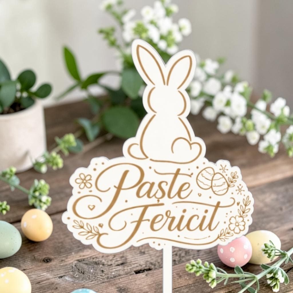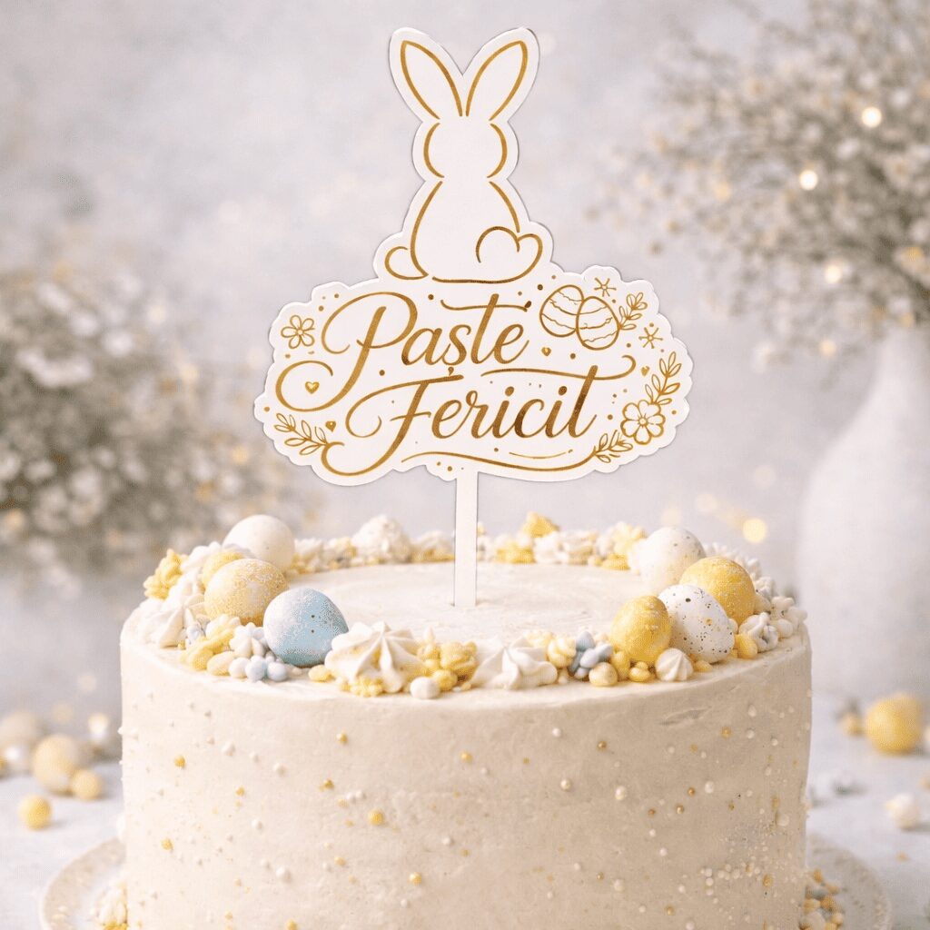 Topperul Paște poate fi utilizat cu succes nu doar pentru torturi, ci și pentru cozonaci, platouri festive, buchete sau aranjamente florale de primăvară. Este un accesoriu ușor de integrat, care oferă un impact vizual imediat, fără a încărca decorul. De asemenea, poate fi refolosit de la un an la altul, fiind o alternativă practică și durabilă la decorațiunile de unică folosință.