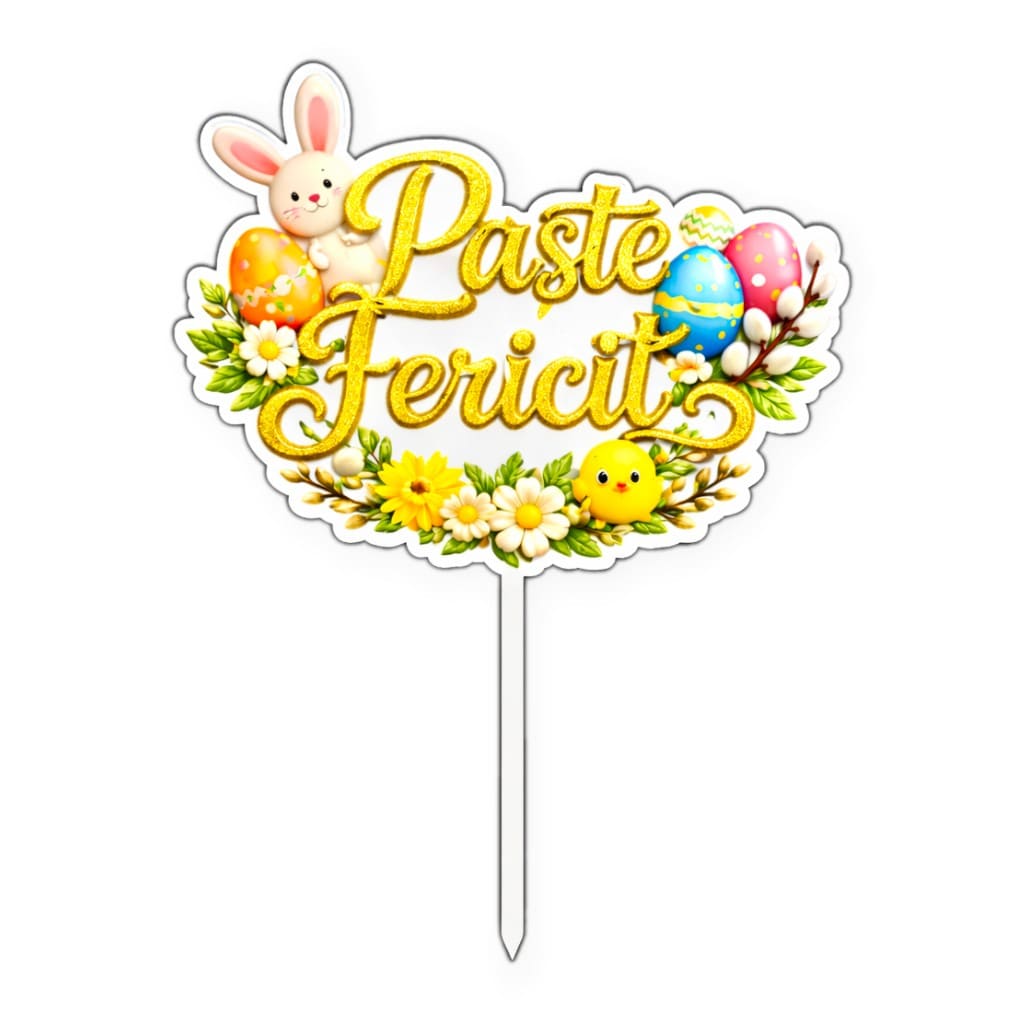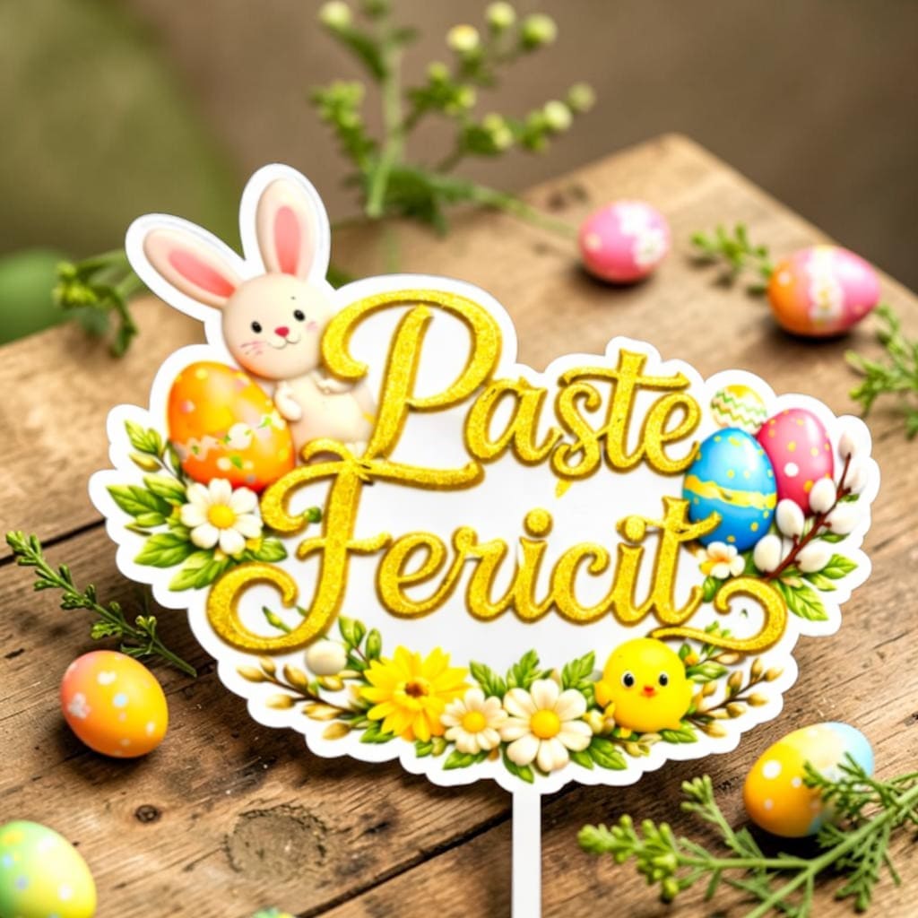 Topperul Paște poate fi utilizat cu succes nu doar pentru torturi, ci și pentru cozonaci, platouri festive, buchete sau aranjamente florale de primăvară. Este un accesoriu ușor de integrat, care oferă un impact vizual imediat, fără a încărca decorul. De asemenea, poate fi refolosit de la un an la altul, fiind o alternativă practică și durabilă la decorațiunile de unică folosință.