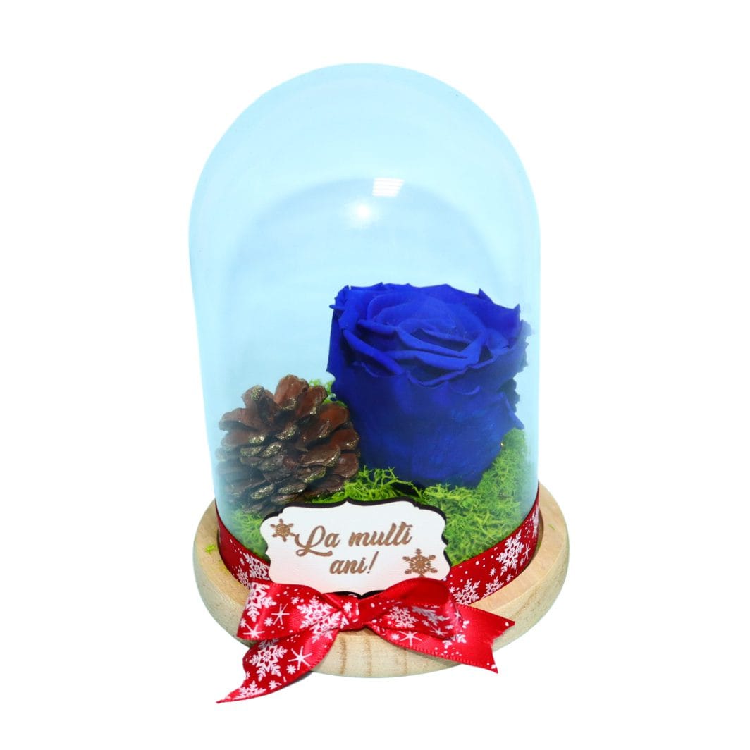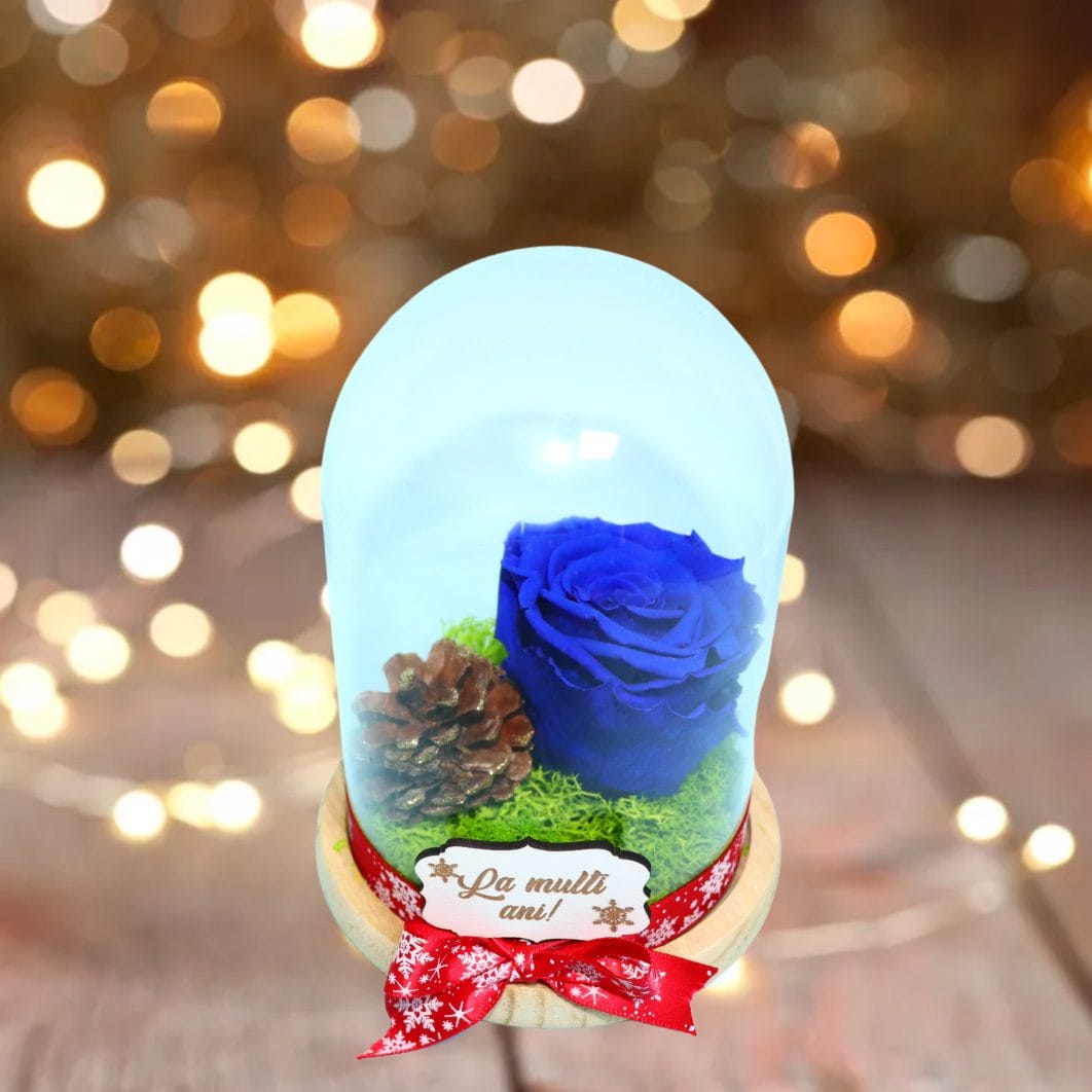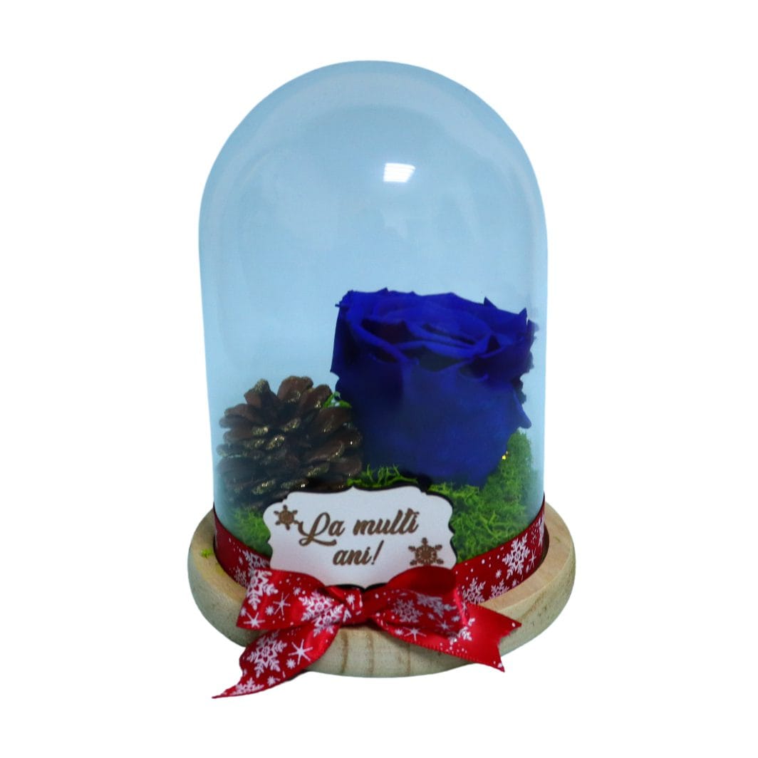 Trandafir Criogenat Albastru in Cupola, Licheni, La Multi Ani, 16x12cm, DL066