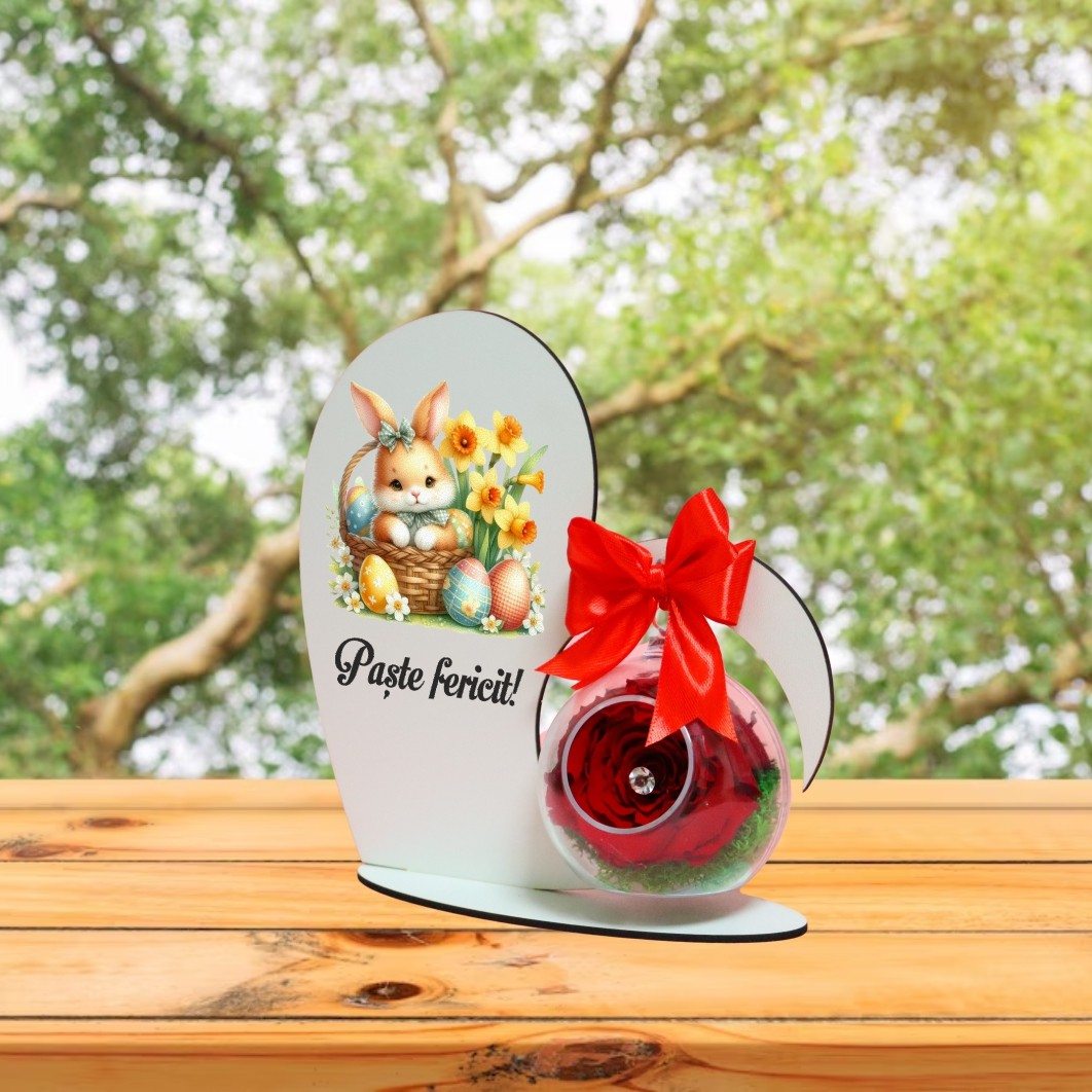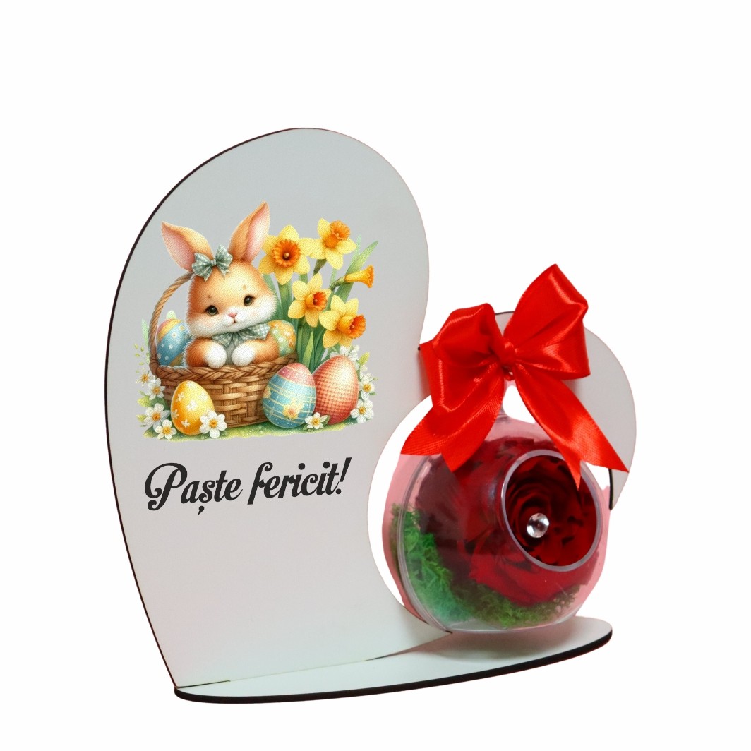 Această decorațiune trandafir criogenat este un obiect decorativ elegant și rafinat, creat pentru a transmite emoție, iubire și apreciere în cele mai frumoase momente ale anului. Realizată special pentru perioada Paștelui, decorațiunea îmbină armonios elemente naturale cu un design modern, devenind un cadou memorabil pentru persoanele dragi. Suportul este realizat din lemn în formă de inimă, colorat prin print UV multicolor, oferind un aspect vibrant și deosebit.