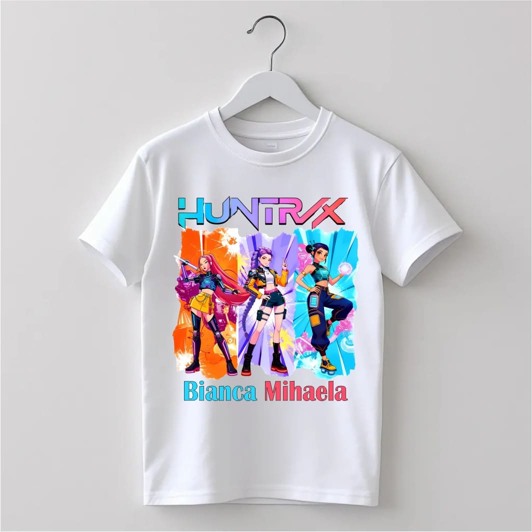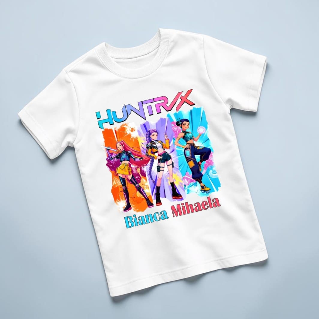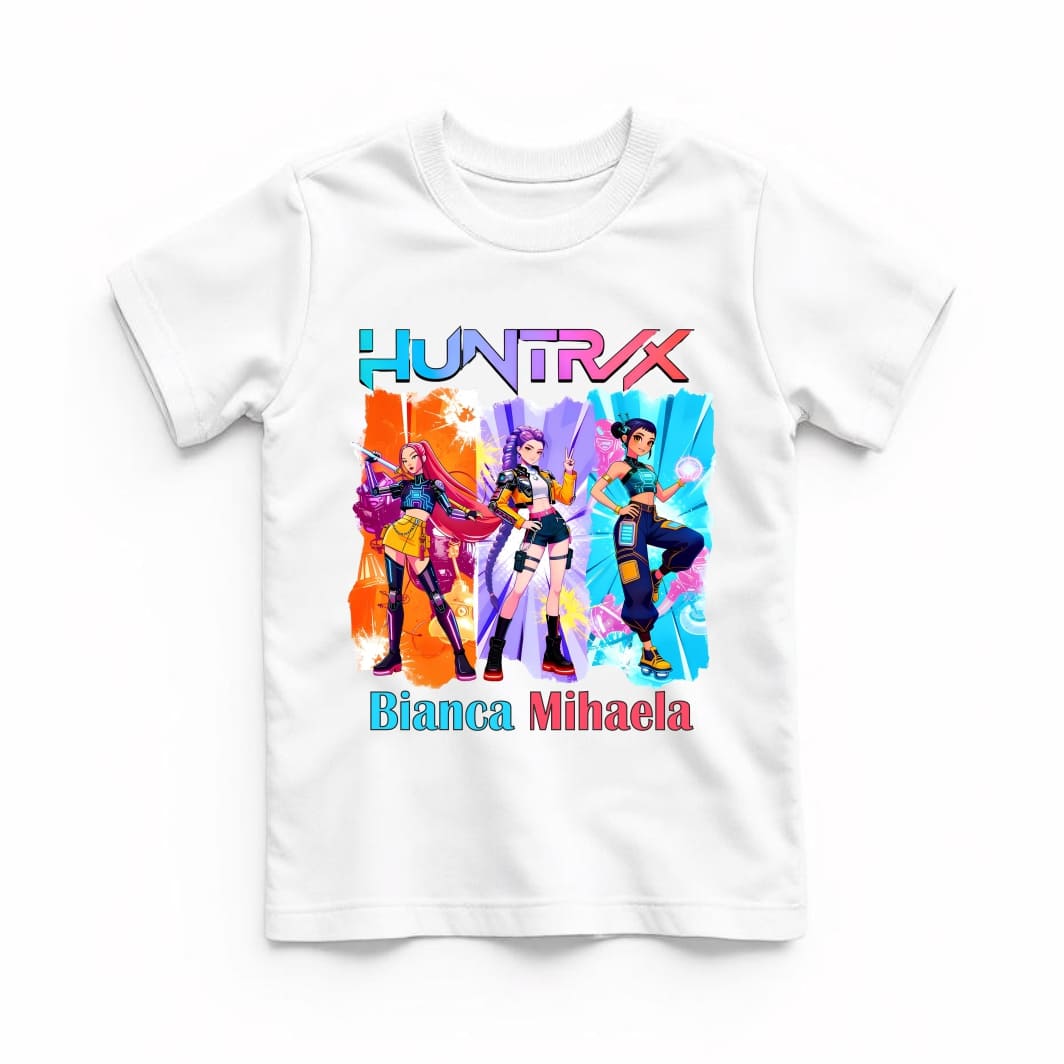 Tricou copil, Personalizat, Huntrix, Bumbac, Alb, TRA015