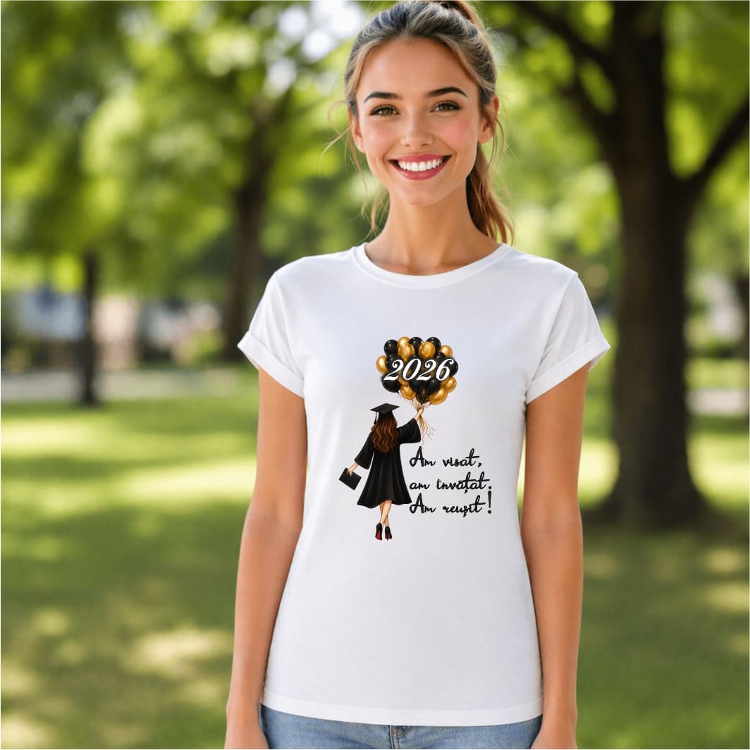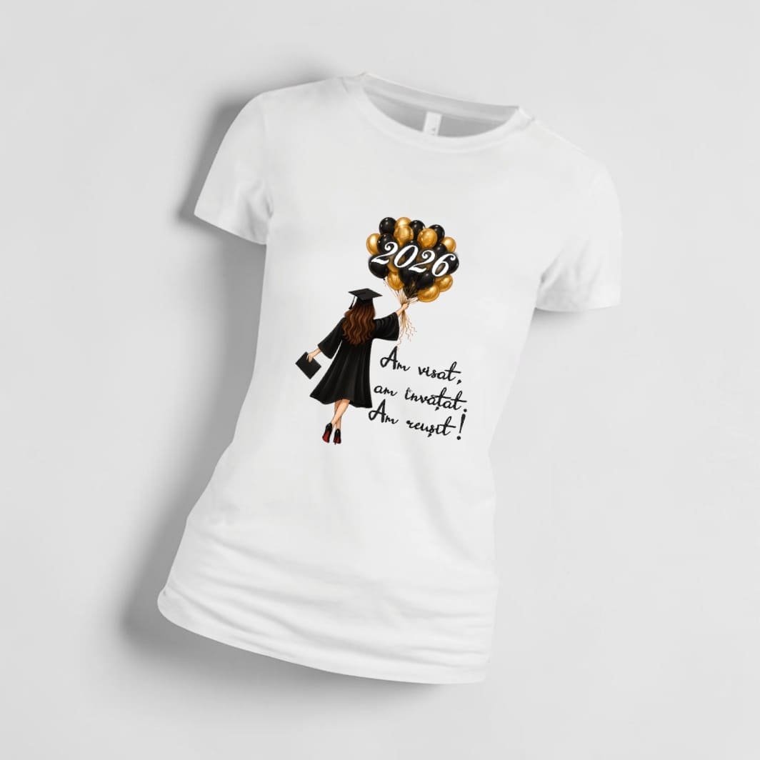 Realizat din materiale confortabile și rezistente, tricoul este ideal pentru festivități, petreceri de absolvire sau ca amintire de neuitat. Este mai mult decât o piesă vestimentară — este un simbol al drumului parcurs și al visurilor care abia încep.