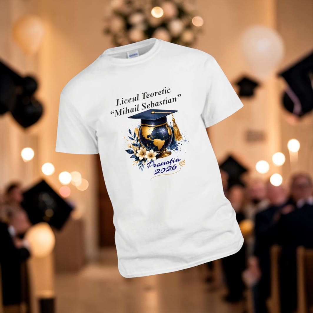 Realizat din materiale confortabile și rezistente, tricoul este ideal pentru festivități, petreceri de absolvire sau ca amintire de neuitat. Este mai mult decât o piesă vestimentară — este un simbol al drumului parcurs și al visurilor care abia încep.