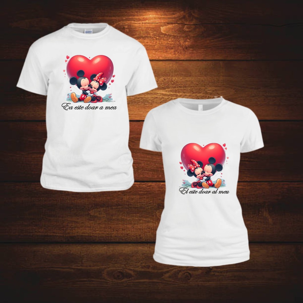 Îmbrățișați iubirea cu tricourile cuplu, perfect concepute pentru a reflecta conexiunea dintre voi! Realizate din bumbac 100%, aceste tricouri albe oferă un confort deosebit și respirabilitate, fiind ideale atât pentru zilele obișnuite, cât și pentru momentele speciale. Alegeți un stil modern și elegant care să dureze, păstrându-și forma și culoarea chiar și după multiple spălări!