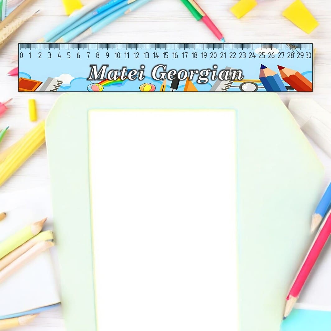 - *Personalizare:* Adăugarea numelui copilului face ca această *riglă personalizată* să fie un obiect unic și ușor de identificat, eliminând riscul de a fi pierdută sau confundată.