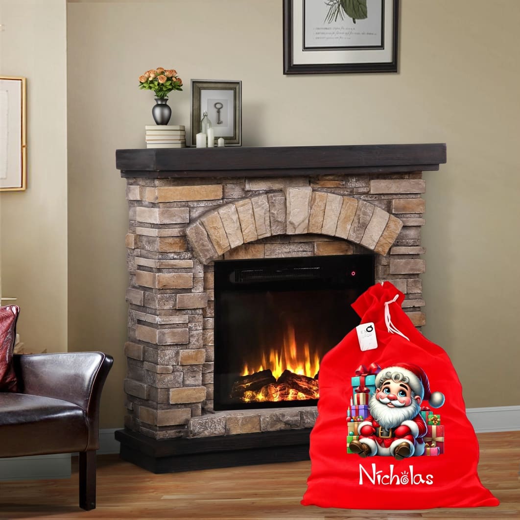 Saculet Personalizat de Craciun Catifelat, Rosu, Mos Craciun, 60 cm, SMCR024