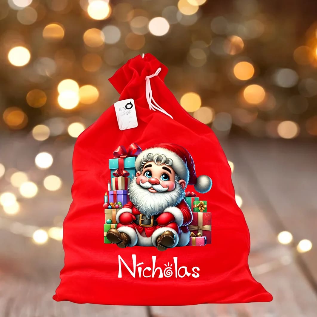 Sacul cu tematica de Craciun este ideal pentru a fi umplut cu micile suprize ale celor mici, fiind totodata un accesoriu ce completeaza tinuta lui Mos Craciun.