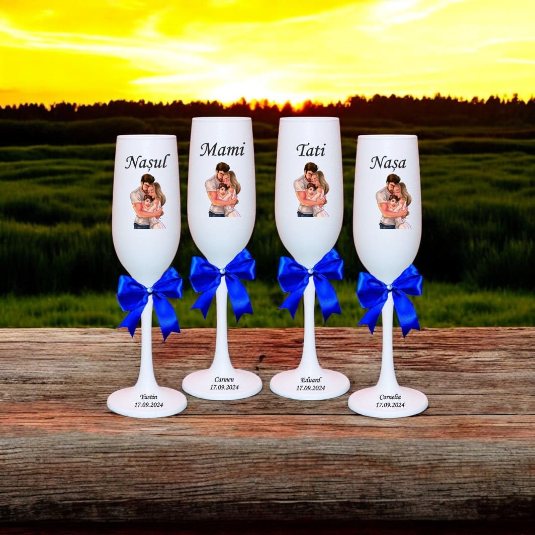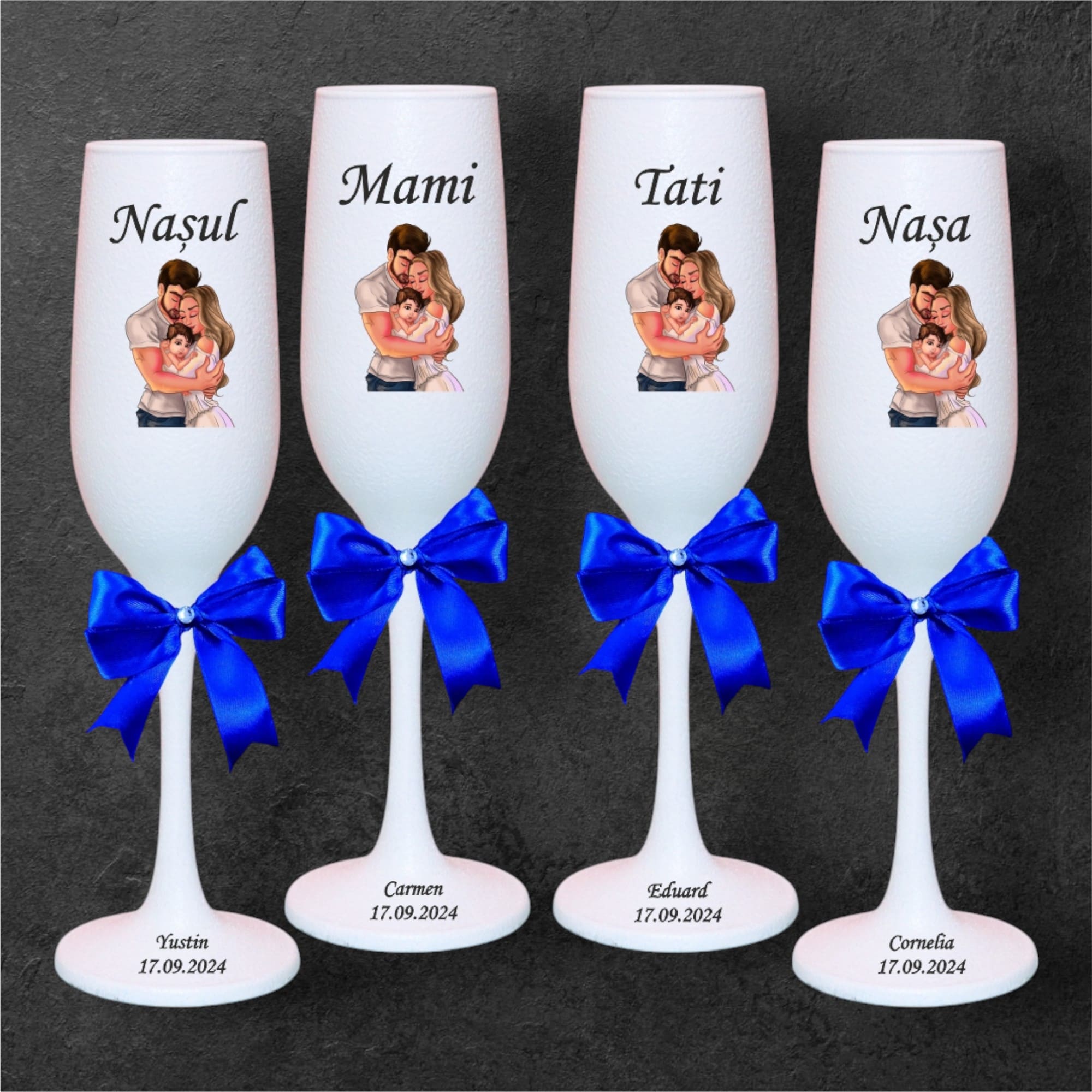 - Set complet de 4 pahare, ideal pentru mami, tati, naș și nașă
