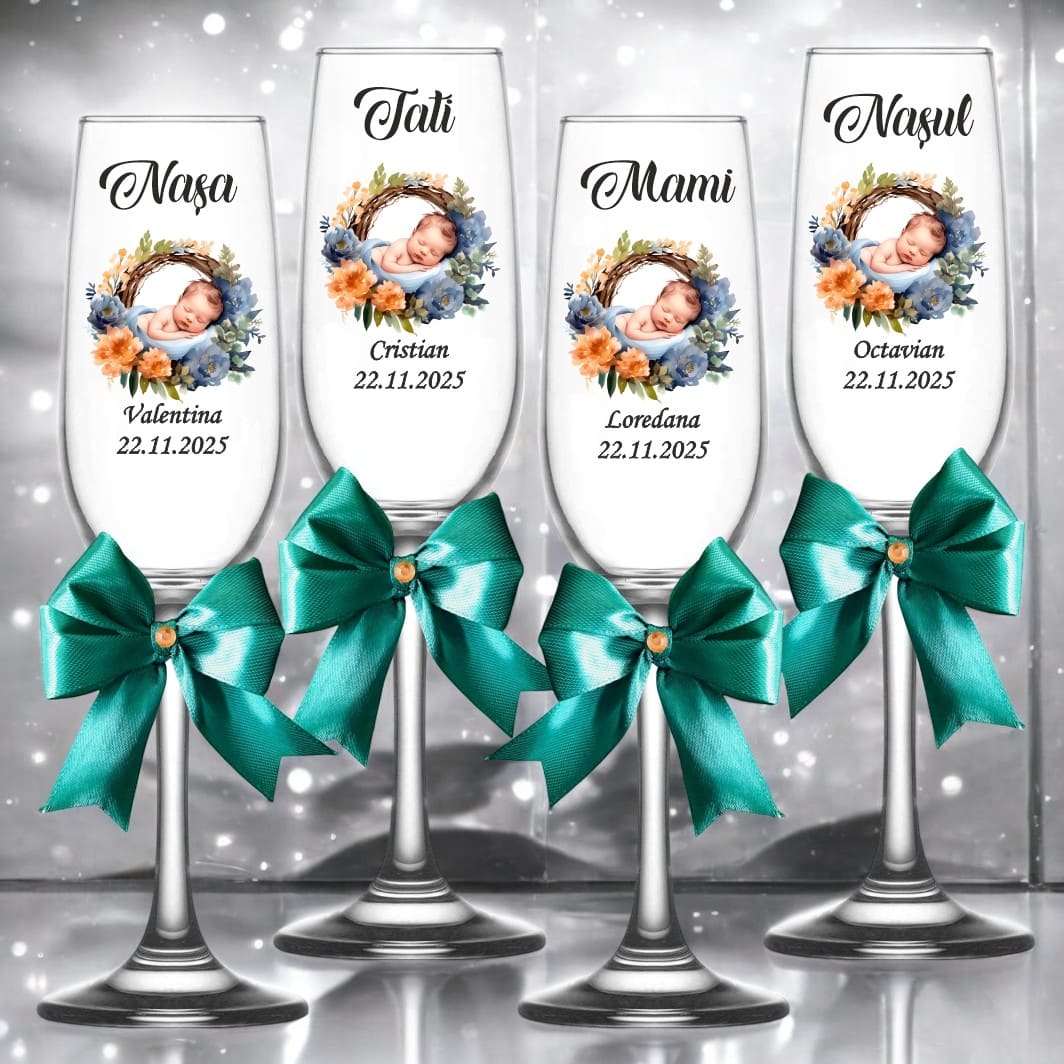 Fii primul care scrii o recenzie pentru „Set 4 Pahare Botez Personalizate, Floral, Verde, PBT010”