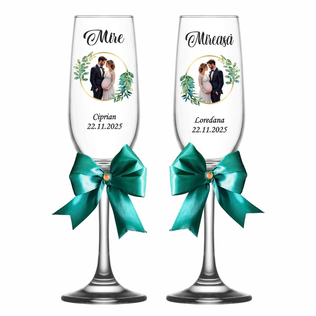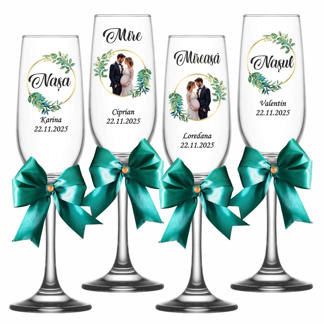 Set 4 Pahare Personalizate, Nunta, Miri, Nasi, Verde, PNBT015