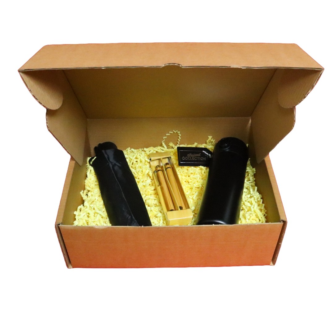 Set cadou Craciun 4 piese, Umbrela eleganta neagra, Pix si Creion, Termos negru smart, 32,5×25,5×10,5 cm, SCC004
