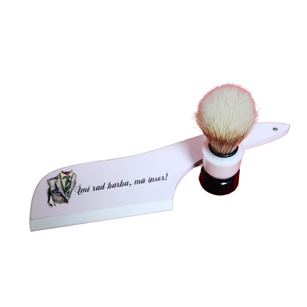 Setul pentru gătitul/ barbieritul mirelui cuprinde tăvița, cutitul(din lemn, cu rol simbolic) și pamatuful.