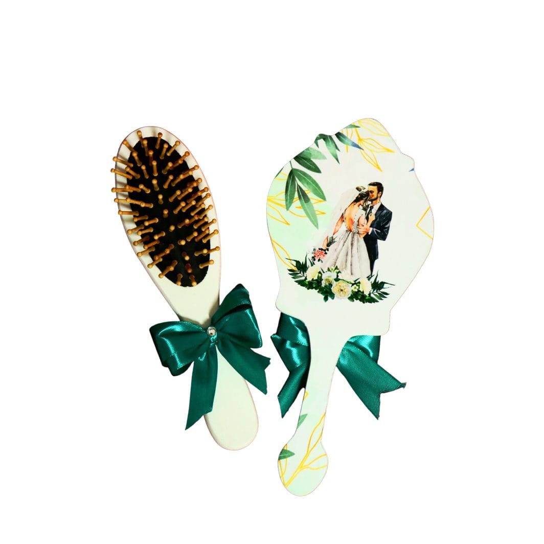 Setul pentru gătitul miresei cuprinde tăvița, peria de par și oglinda ce îți va tranforma nunta într-o poveste cu prinți și prințese și vor da startul unei vieți minunate în doi.